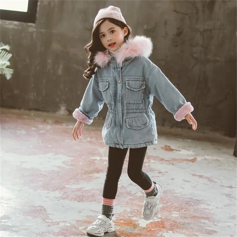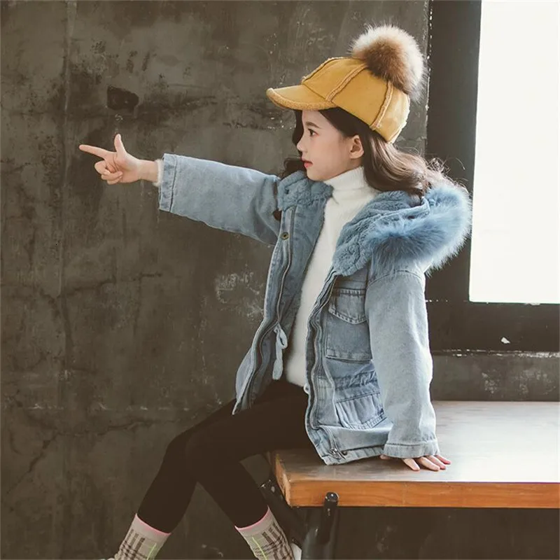 Зимние куртки для девочек, наряды, детское джинсовое пальто, Плотны...