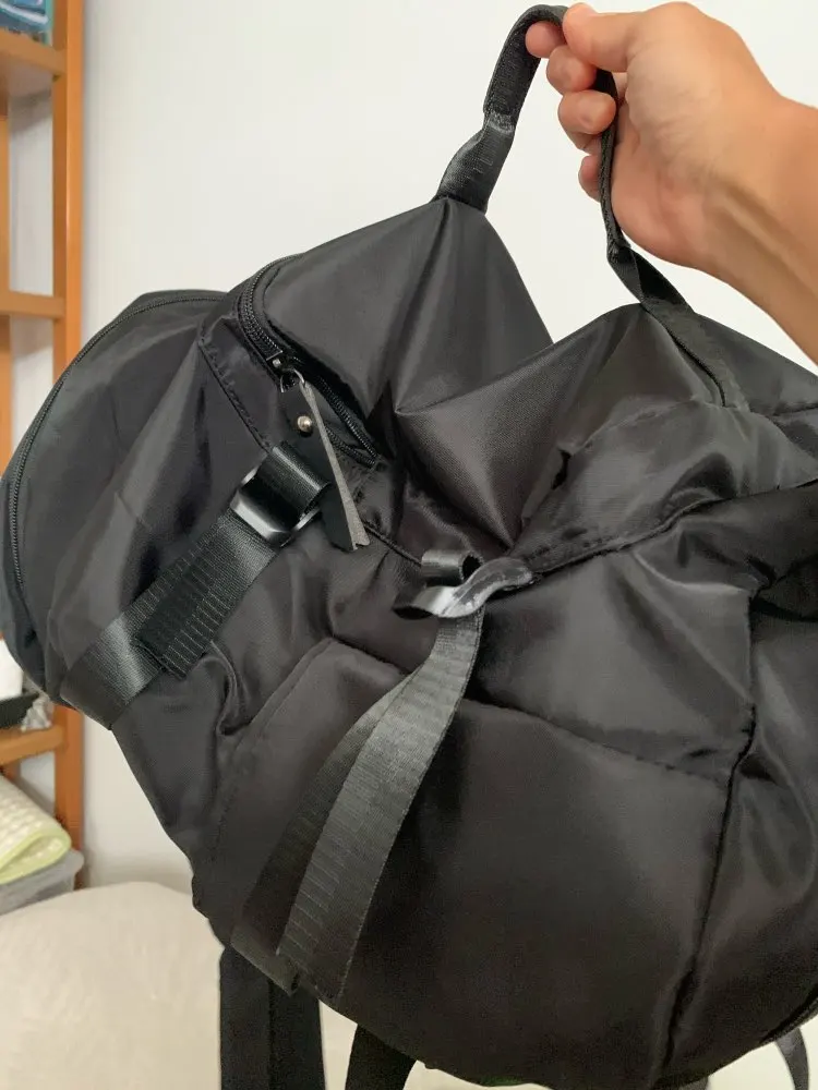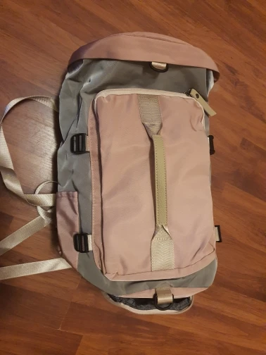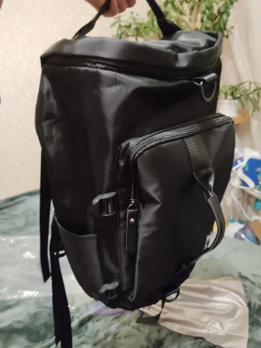 Очень крутой рюкзак-сумка. Вместил кроссовки, резиновые тапочки, шампунь, гель для душа, форму, полотенце, большие наушники, расчёску и по мелочи. И осталось место. Ткань хорошая, швы ровные. По бокам ремни для уменьшения объёма (при желании ими можно зафиксировать коврик для йоги). Можно носить как рюкзак и как сумку. В комплекте мешок для обуви. Отправка и доставка быстрые.