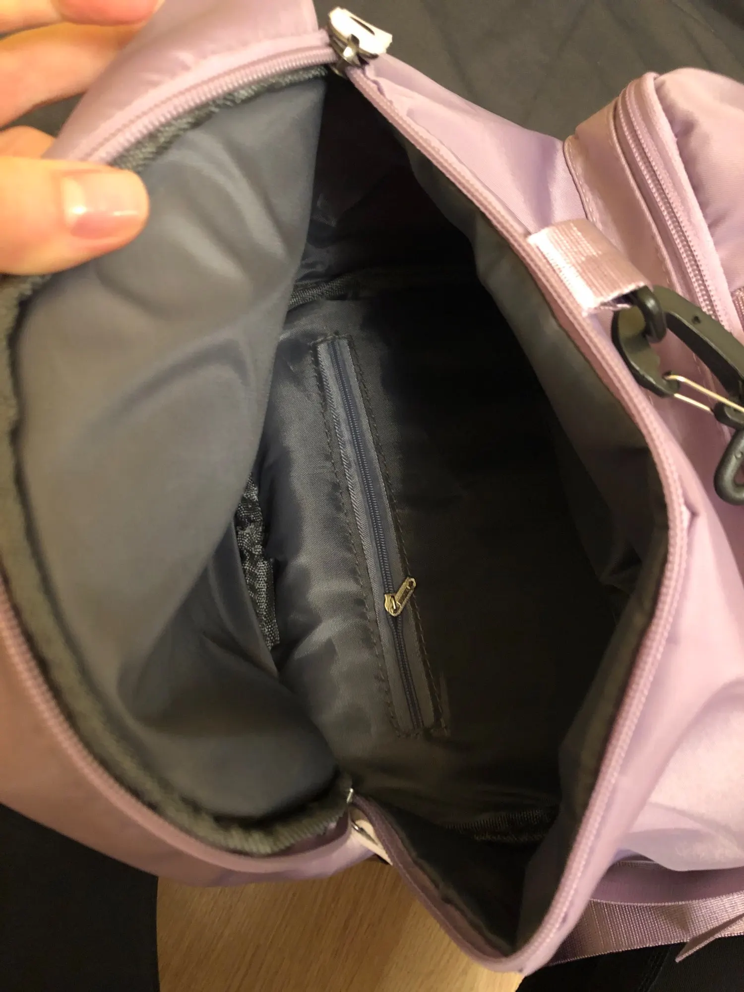 Это просто писец. Ради кармана под обувь заказала этот рюкзак. Сам он вполне обычный, кроме обувного отсека отличий от обычного нет. Пришел за 2 недели до спб. Космический наёб в том,что молния на этом отсеке есть, а собачки нет. И менять молнию выйдет в стоимость рюкзака. Не ведитесь на красивый видос, если хотите рюкзак под фитнес. Возьмите у другого продавца, который проверяет товар перед отправкой.