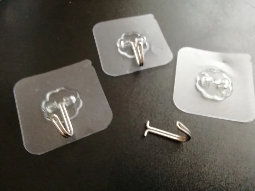 Хорошие крючки, висят и пока не собираются падать. А также из-за прозрачности довольно незаметные, не притягивают внимания. Продавцу спасибо.