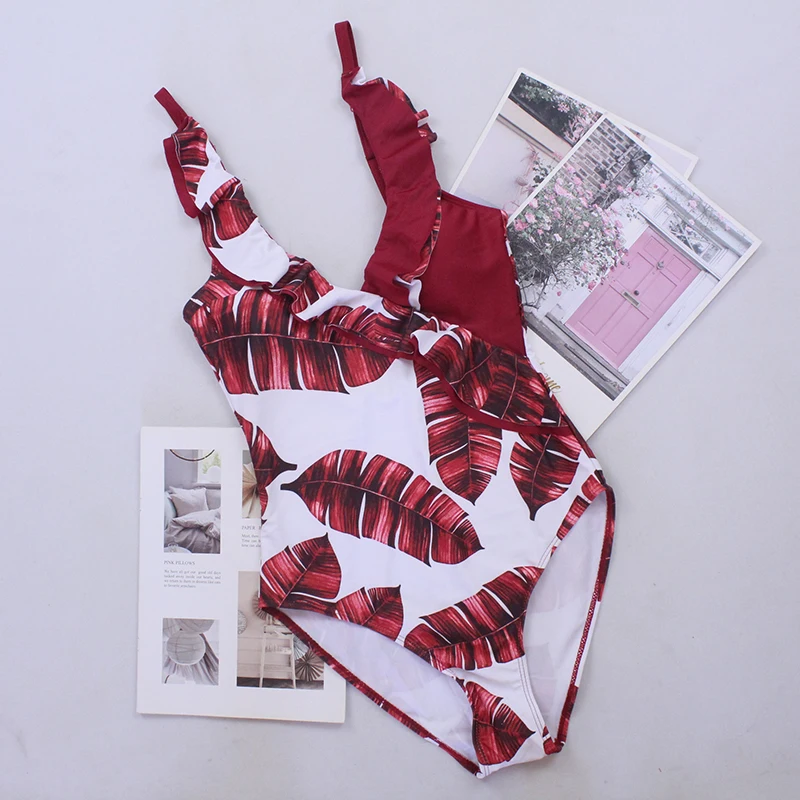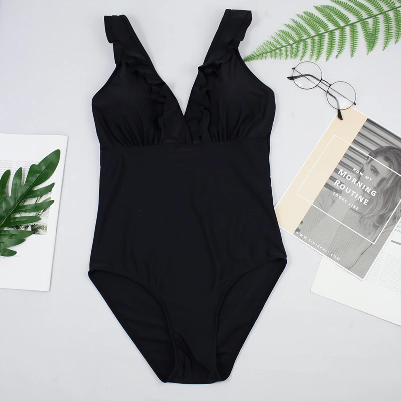 Сексуальный слитный купальник с рюшами, женский черный купальник, монокини с открытой спиной, спортивный купальник, пляжный купальный костюм, 2021 Summe
