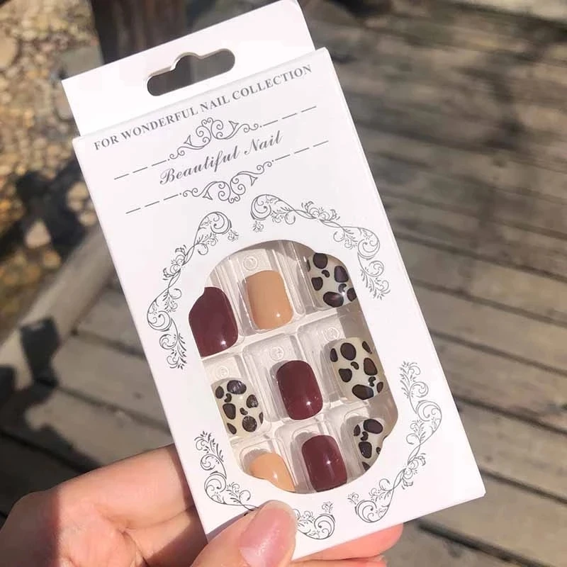 24 шт Искусственные ногти с дизайном клей короткий гроб акриловый искусственный нажмите на полностью накладные ногти винно-красного цвета с леопардовым принтом фальшивые ногти