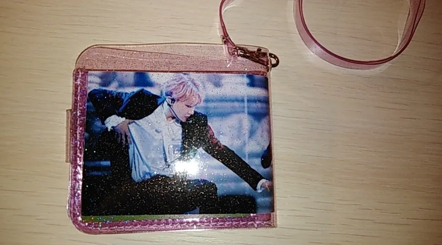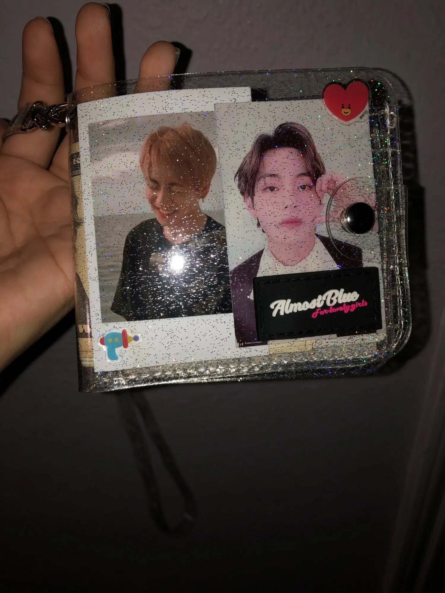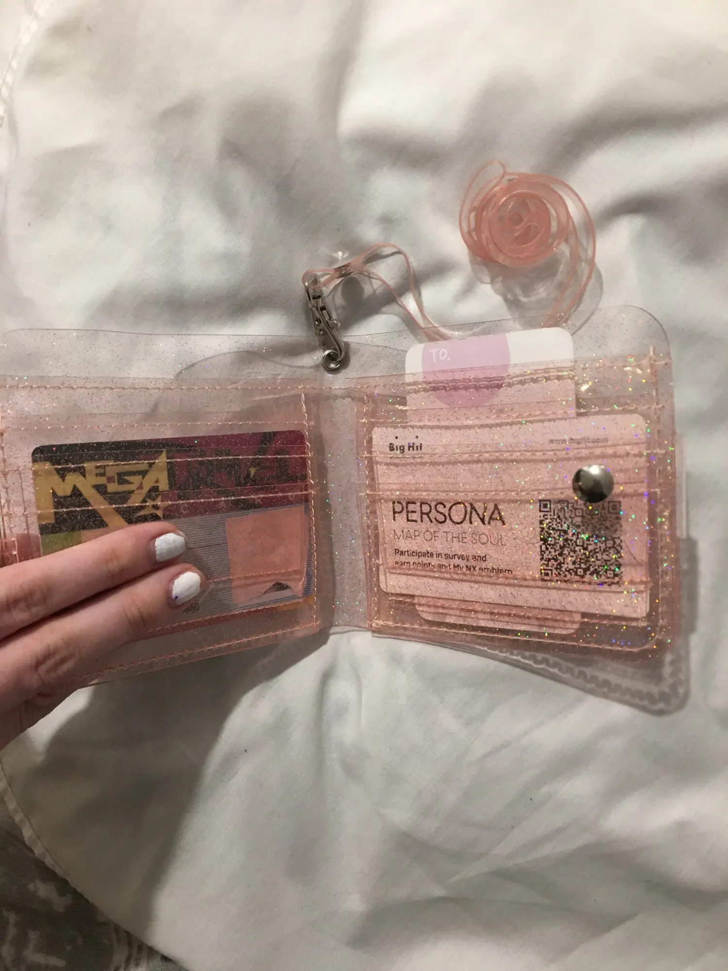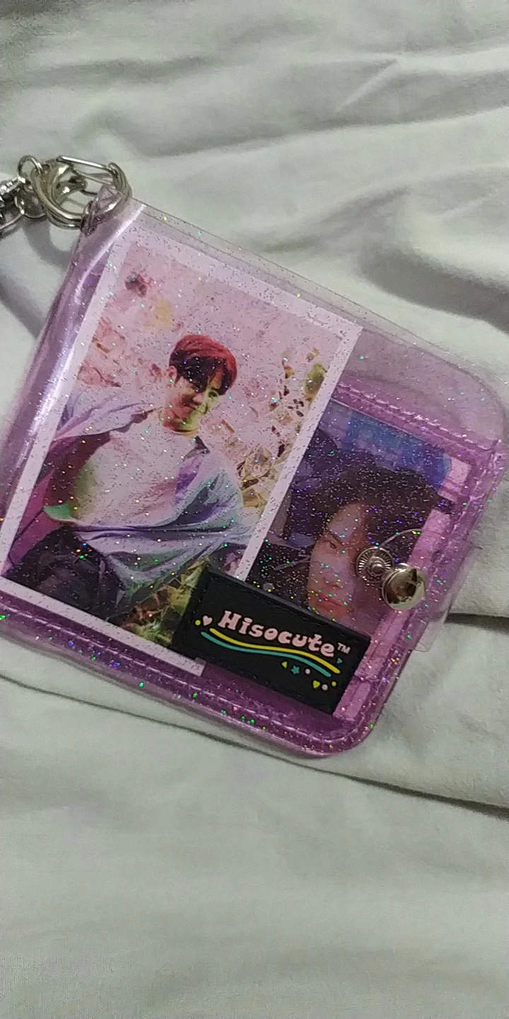 В буквальном стиле очень мило. В нем есть голографические блестки, которые просто Такие очаровательные. Я также поместил свою визитку Namjoon, которая просто дополняет цвет Кошелька