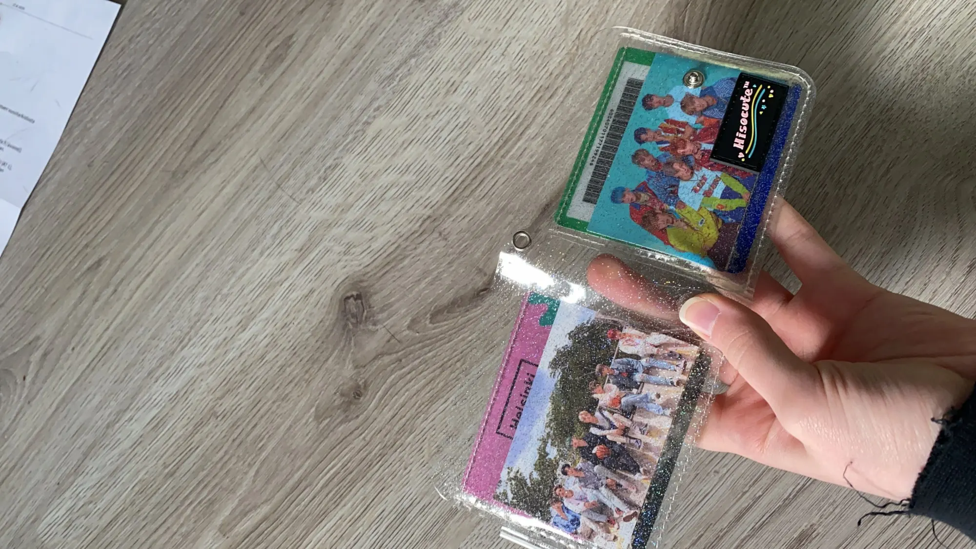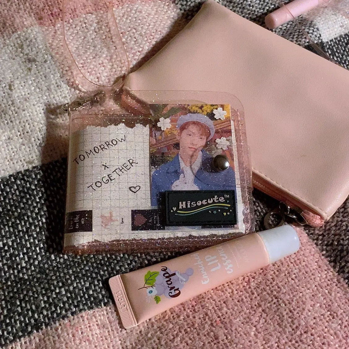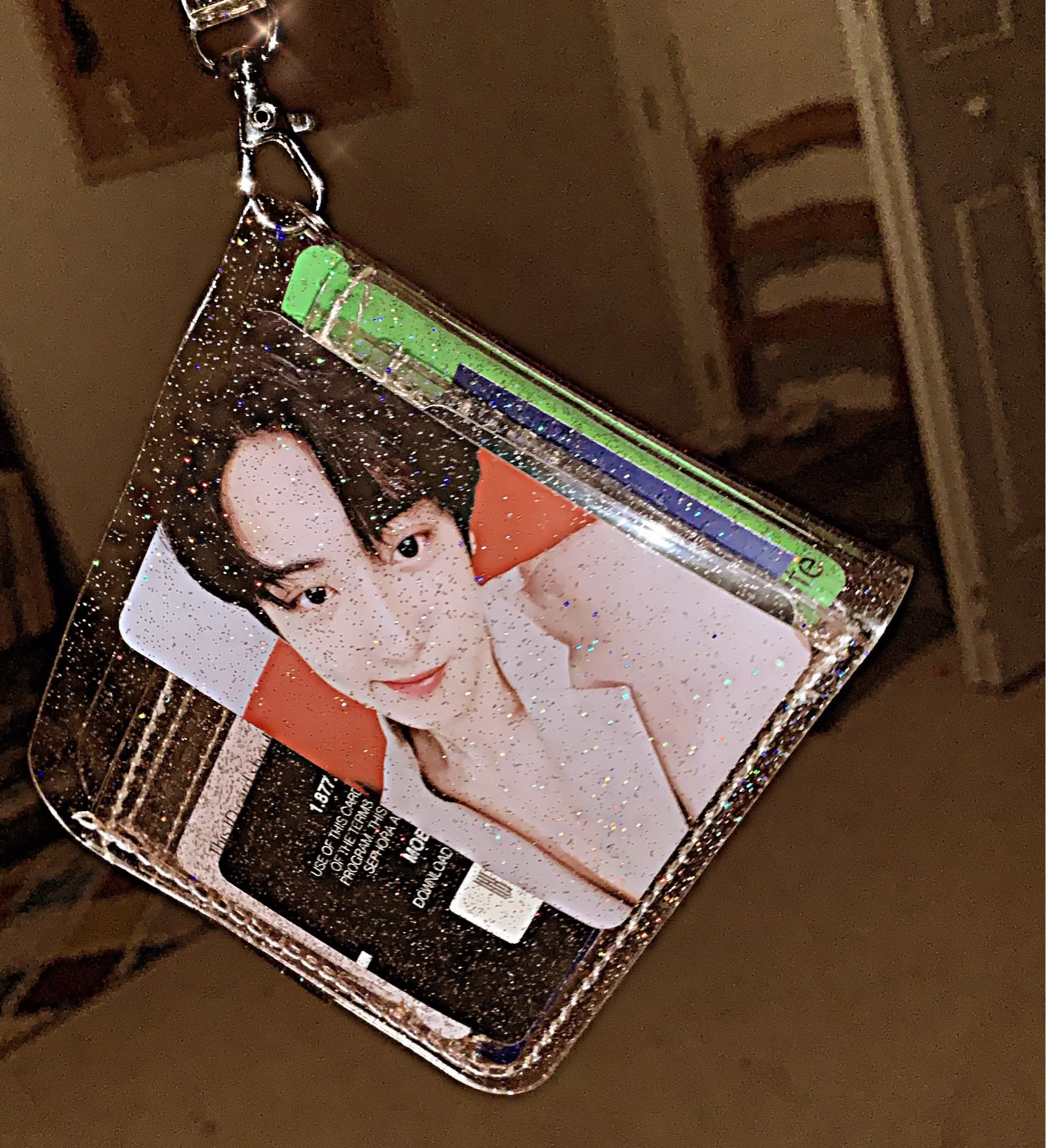 В буквальном стиле очень мило. В нем есть голографические блестки, которые просто Такие очаровательные. Я также поместил свою визитку Namjoon, которая просто дополняет цвет Кошелька