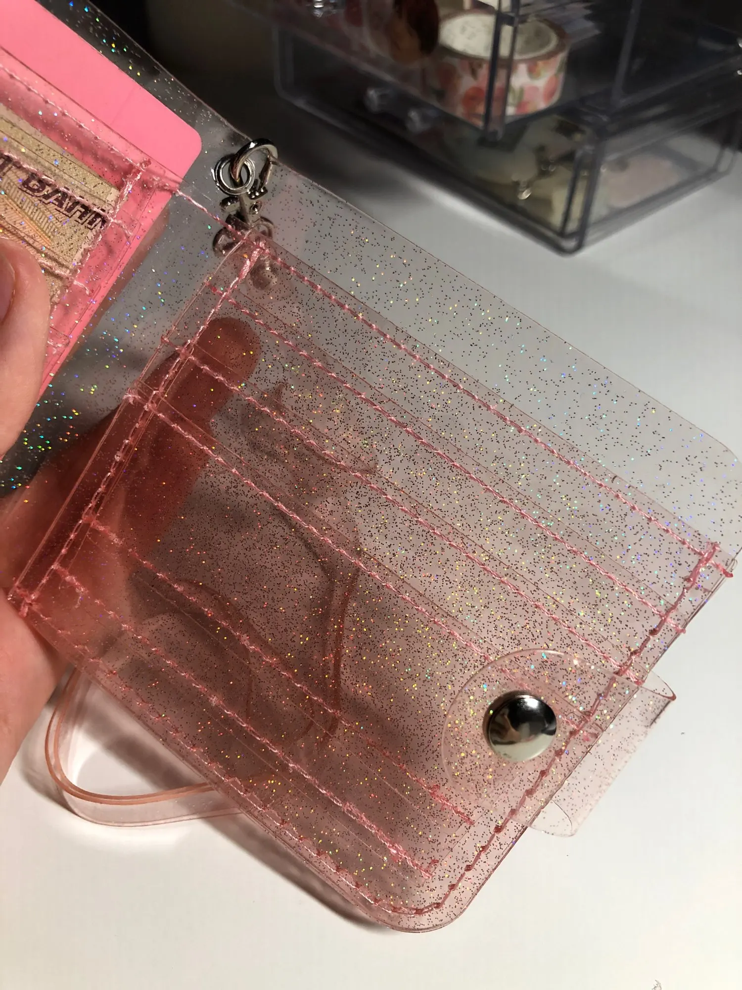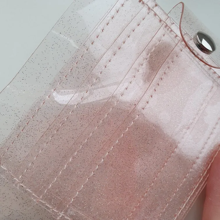Люблю это! Он немного пахнет химическими веществами, но только на очень близком расстоянии. Для человека это очень прозрачный, блестящий розовый, это именно то, что я хотел. Это бумажник, который гораздо больше для людей, которые зависят от карт, я не уверен, насколько хорошо он будет работать для тех, кто очень зависит от наличных денег. Товар прибыл всего за две недели. P.s: для my kpop stans, это может поместиться до 4 фотографий удобно!