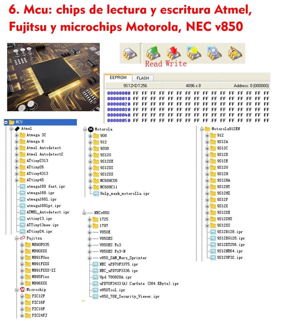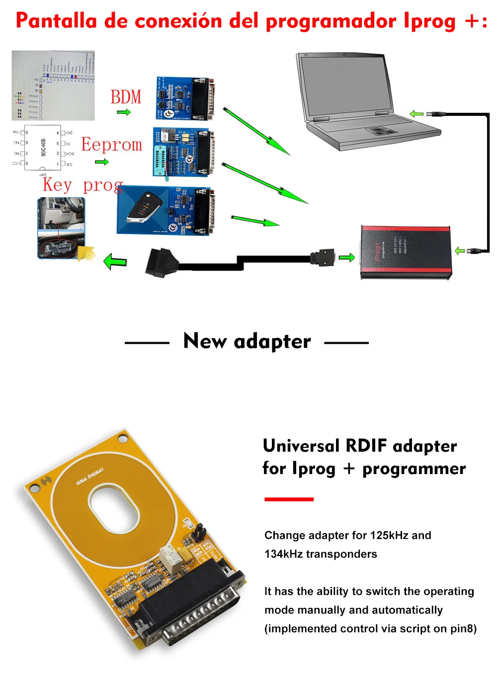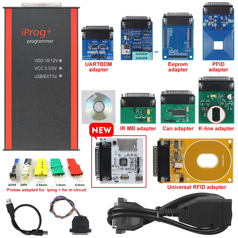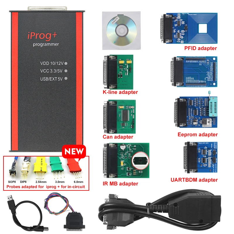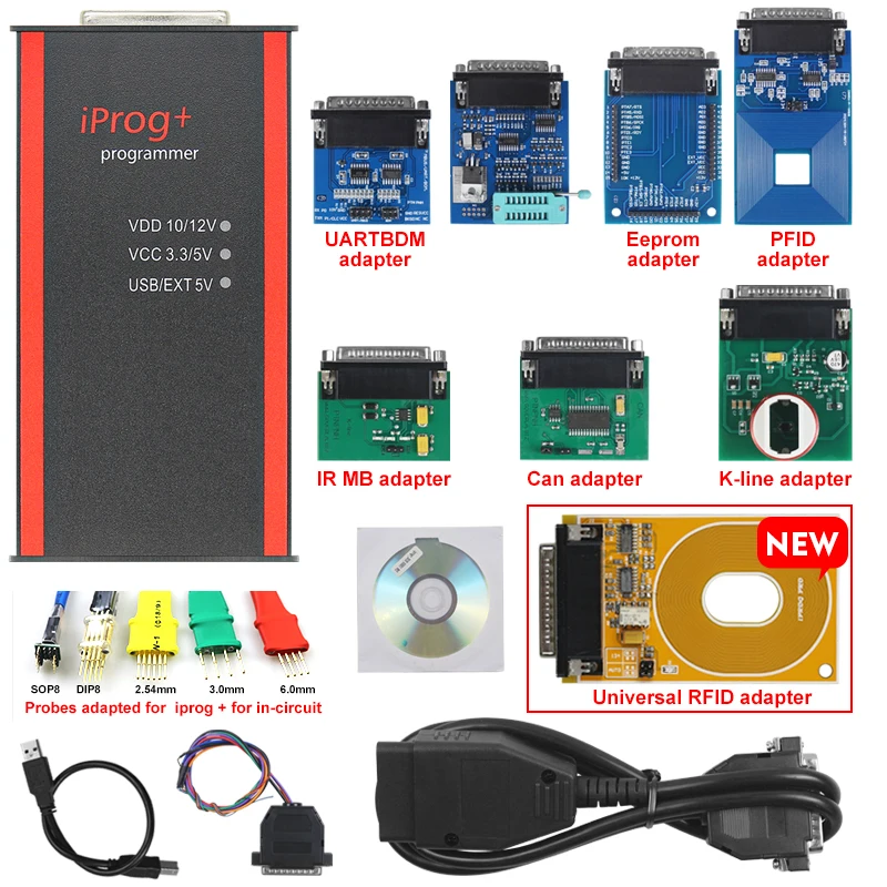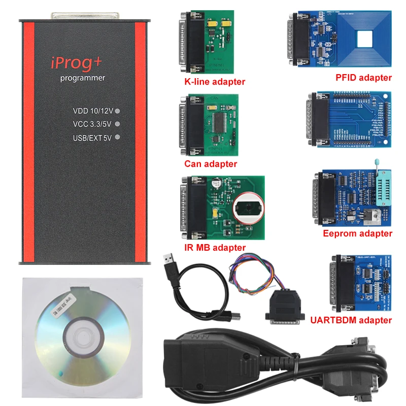 Iprog + основные характеристики программиста:1. Функции, включая подушки безопасности, приборную панель, автомобильное радио, ecu, eeprom, immo, mcu.И более специальные функции, такие какDpf off, MIL to KM, PINABS, PINCODE SMATRA3,PINCODE датчик ограничения скорости, ODO регулировка, Fujutsu, Microchip, Motorola, Motorola912EN, NECV850, BLR, CAN,CRC_Cript, ibutton, unlocker тестирование и т. д.2. Разумная цена:Гораздо дешевле, чем оригинал iprog +, но работает так же, как и оригиналIProg + детальный Список функций программиста:Работа с одометрами на разъеме OBDIIРабота с одометрами на столе через адаптерыРабота с мультимедиа разблокировкой магнитофонаРабота с ключами (IMMO, транспондеры), копирование, подготовка, разблокировкаРабота с автоматическим мусором IMMO-KeyРабота с компьютером подушки безопасности, удаление данных об аварииПередача показаний от миль до кмЧтение и запись процессоров и его использование в автомобиляхПереходники датчиков для встроенных функций ECU:Эти переходники датчиков могут работать как с Iprog + Programmer, так и с Xprog, что может значительно облегчить вашу работу без пайки.IPROG PCF79xx sd-карта функция адаптера:Чтения и записиPEC7941/52/53/61 диагностический протокол через MSDA, линииВставьте sd-карту для использования новейшего программного обеспеченияУниверсальный адаптер RDIF для Iprog + функции программиста:Адаптер предназначен для работы с приемопередатчиками 125 кГц и 134 кГц.Возможность ручного переключения режимов работы, а также автоматически (с реализованным контролем от сценария на pin18).