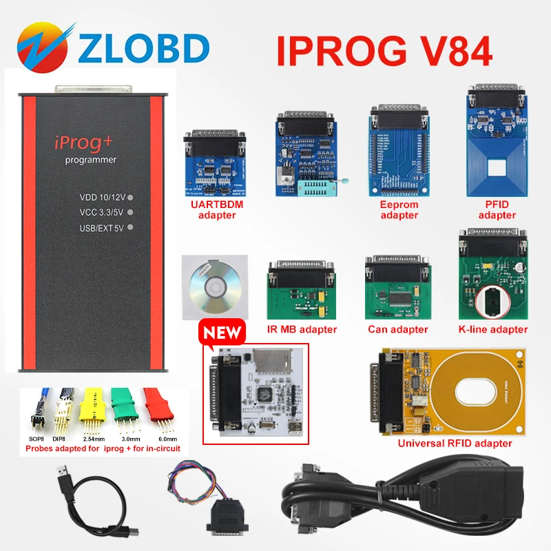 Это пачка для V84 Iprog +, переходники датчиков, IPROG Plus PCF79xx sd-карта адаптер и универсальный RDIF адаптер