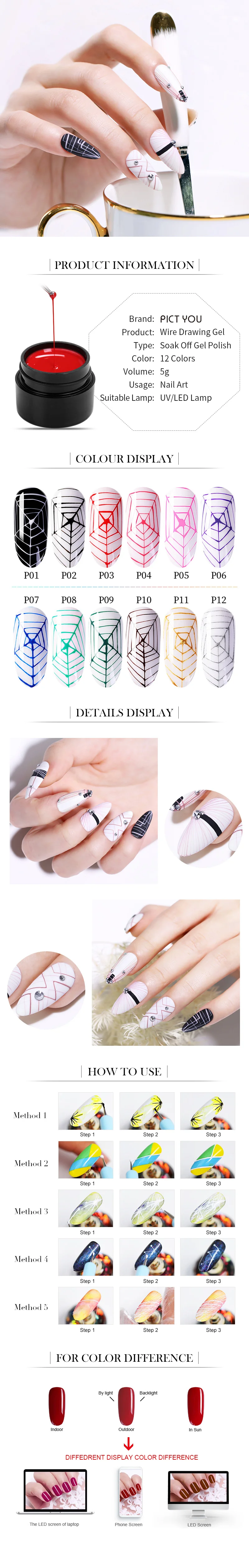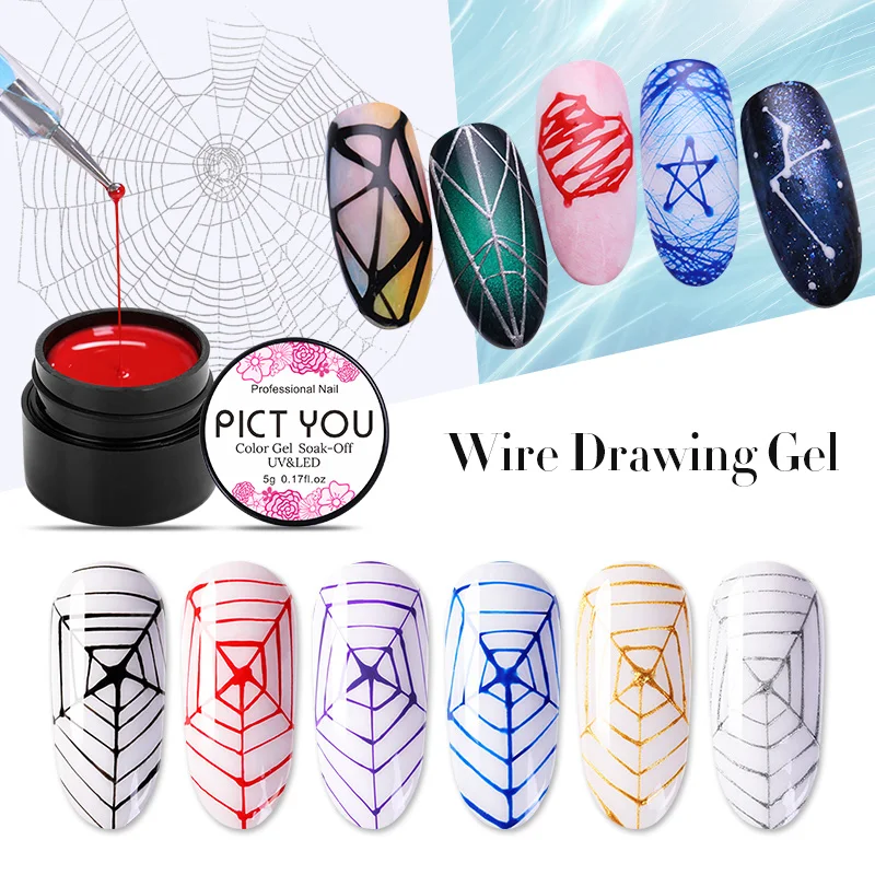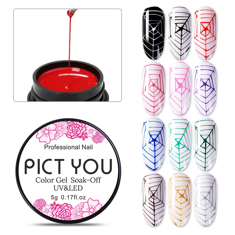 PICT YOU Гель-лак для рисования пауком на проводе, черный, белый, золотой, серебряный лак для дизайна ногтей Пауком, долговечный УФ-гель для замачивания