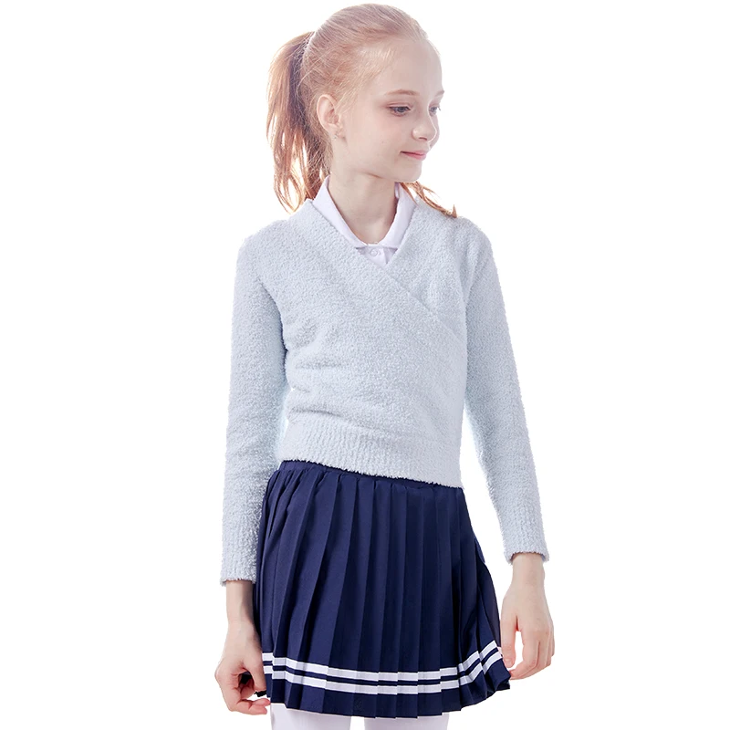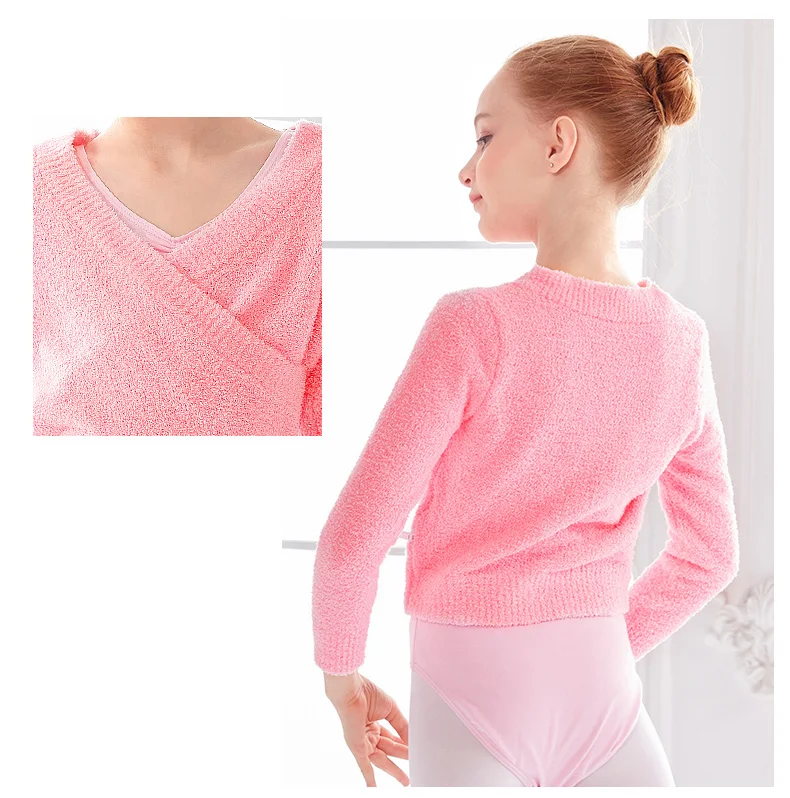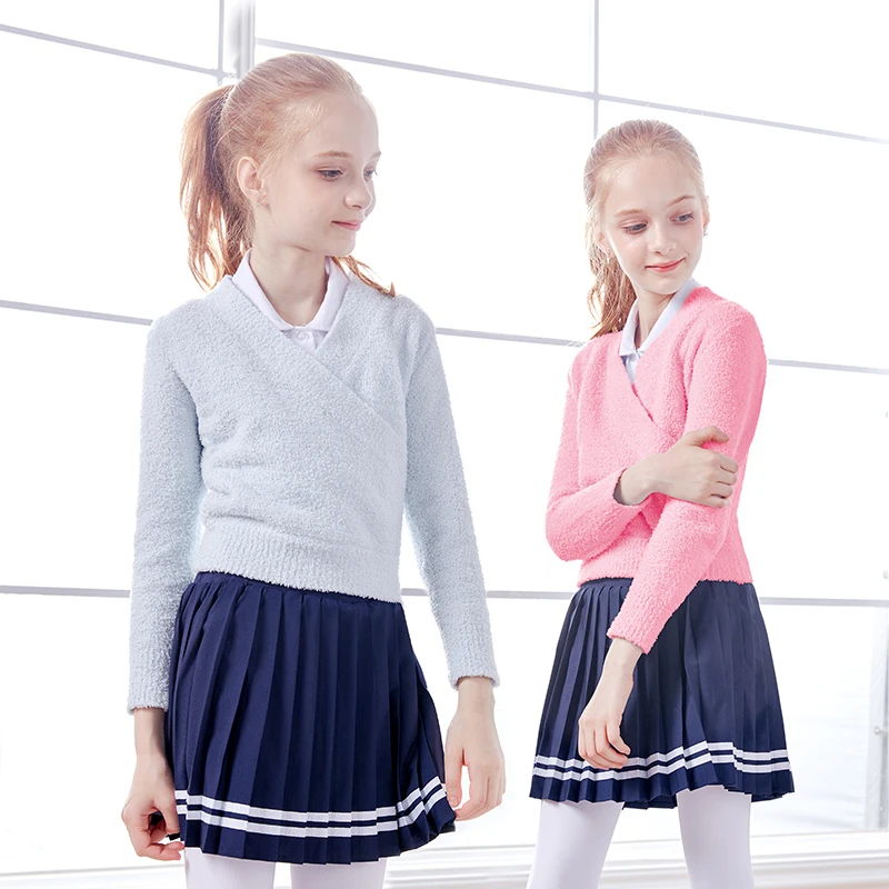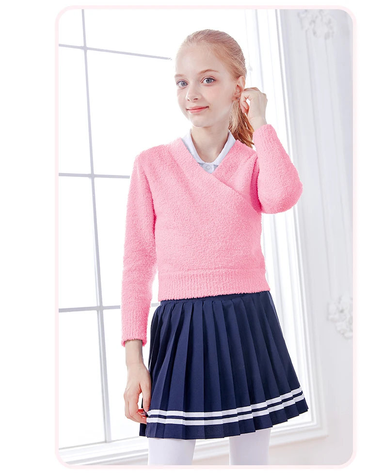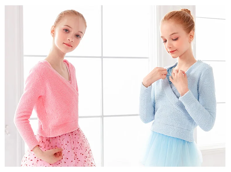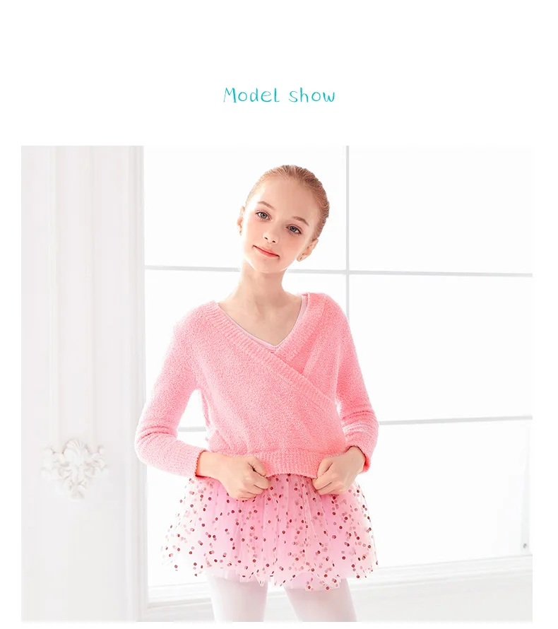 Пальто для балерины для девочек, свитер для балета и гимнастики, Детские топы для танцев, пуловеры из полиэстера с длинным рукавом, куртка с запахом для осени и зимы