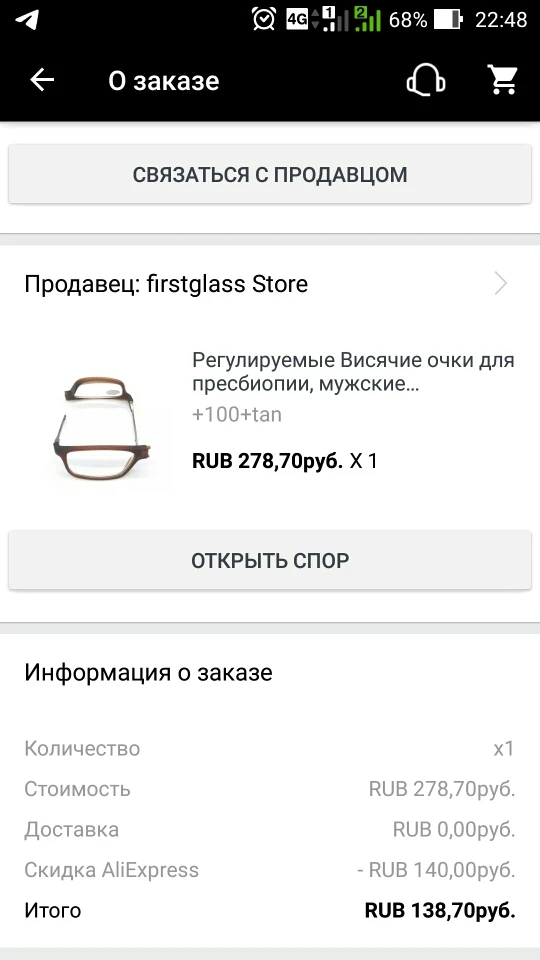 Очки пришли сломаными. Был открыт спор. Продавец обещал вернуть деньги. Уже прошло две недели - денег нет!!!!!!!!!!!!!