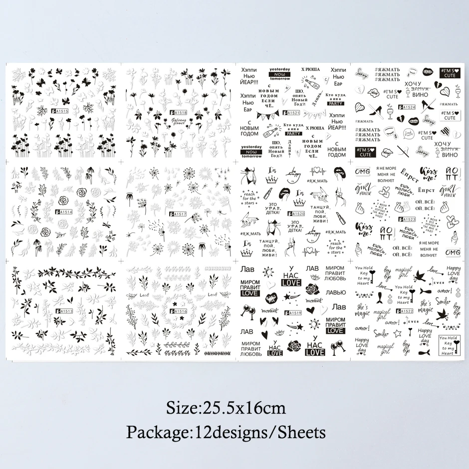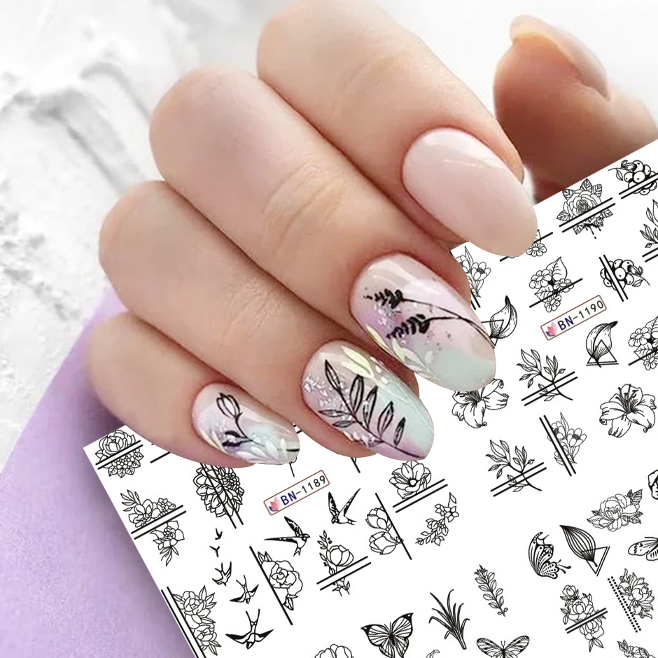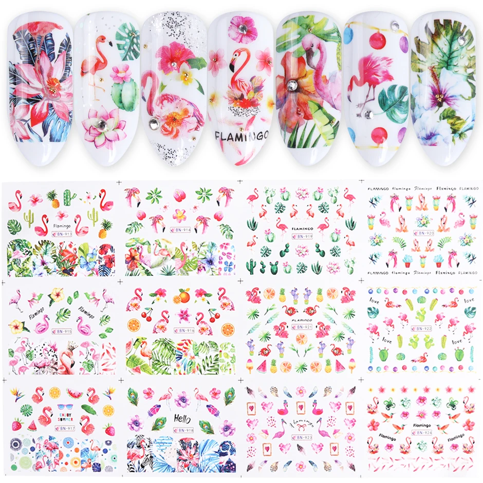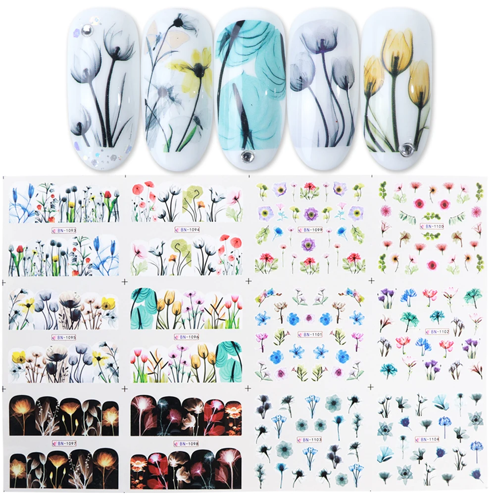 Слайдер для ногтевого дизайна, 12 шт., декоративные Стикеры, переводные наклейки с цветами, листьями, для девочек, для маникюра, сделай сам, CHA1513-1560