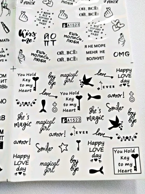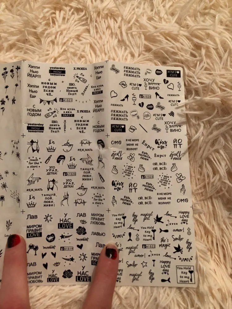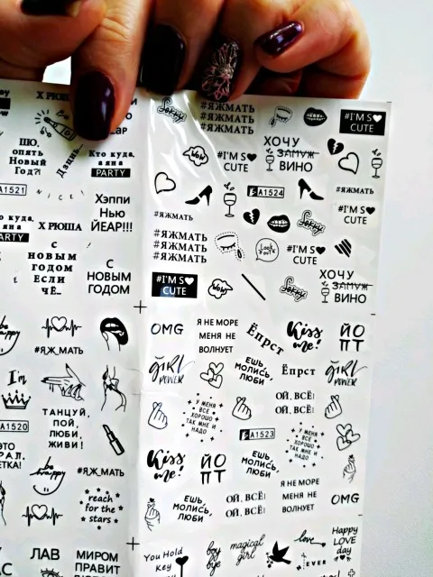 отличные наклейки, единственное, некоторые пришли полностью белые (то есть брак) , а есть и правда белого цвета. на ногтях выглядит потрясно