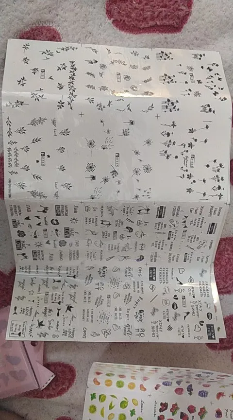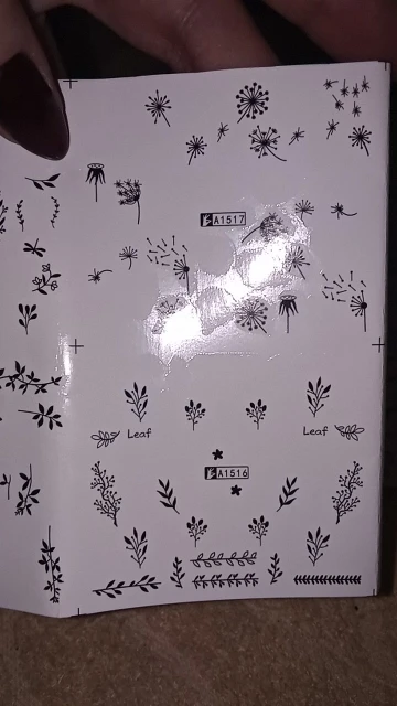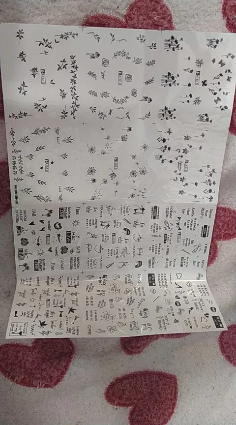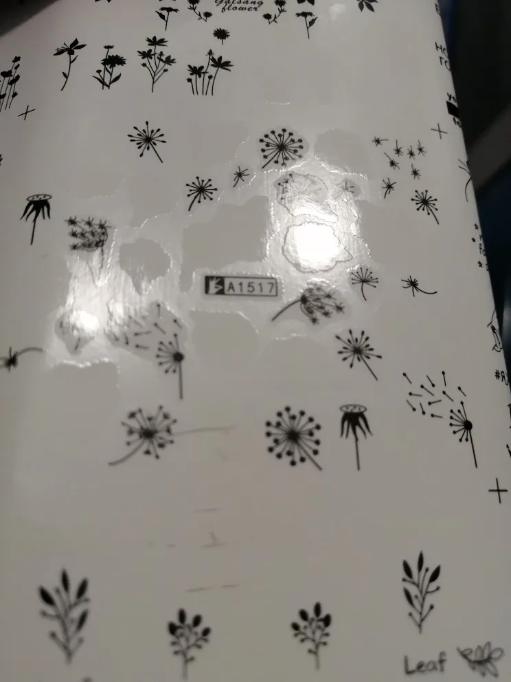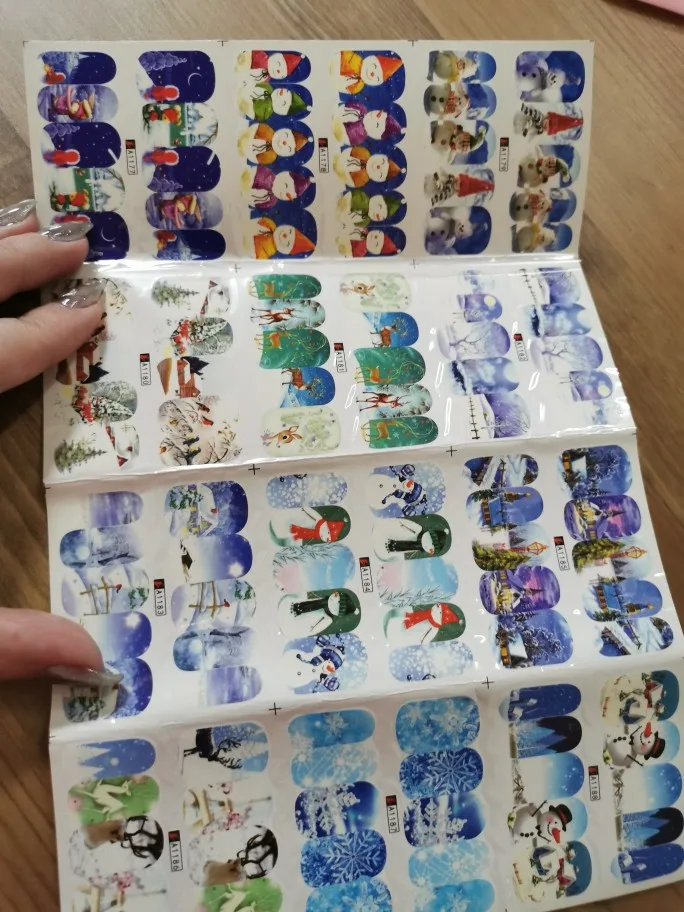 Заказывала слайдеры в день шоппинга 11.11, пришли 28.11, за 2 недели. Не ожидала, что придут так быстро. На одном листе 12 наборов слайдеров, считаю удобным разрезать на части. В местах, где белые "проплешины", тоже есть наклейки, на свету их видно (фото приложила). Единственное что, нужно их проверить на ногтях с тёмным покрытием, чтобы убедиться, действительно ли там есть изображение или это просто белые кружочки.