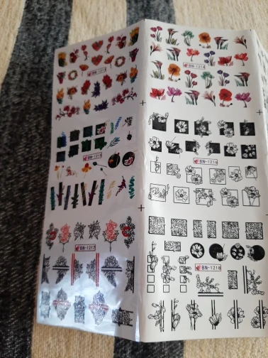 Качество слайдеров хорошее, очень тонкие, легко клеятся. 12 узоров на листе 25*16 см. Сверху листы покрыты плёнкой. Рисунки четкие, довольно мелкие, многие подойдут даже на маленькие ногти. Шли около месяца до Крд. Листы были согнуты в 2 раза, на качестве слайдеров это не отразилось, т.к. сгибы между листочками, думаю, полежат под прессом и расправятся. На мой взгляд отличные слайлеры за небольшую цену. Буду заказывать ещё!