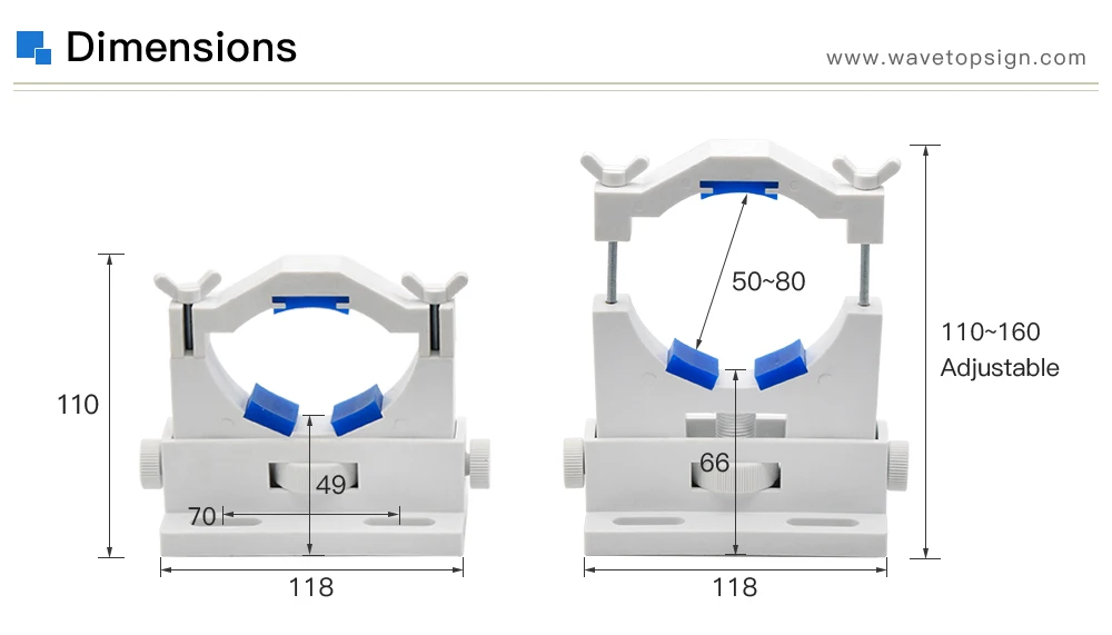 Держатель лазерной трубки WaveTopSign, гибкий пластиковый держатель 50-80 мм для лазерного гравировального станка 50-180 Вт
