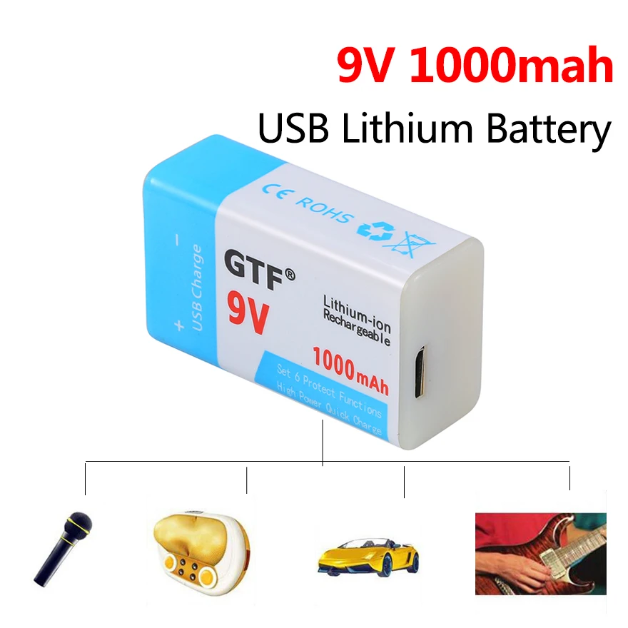 1000 mаh 9В USB Батарея 9V 6F22 зарядка через USB Перезаряжаемые литий Батарея для мультиметр микрофон игрушка дистанционного Управление KTV клетки