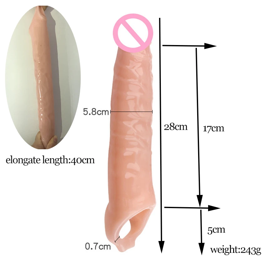 Большой удлинитель для пениса, 28 см, многоразовые презервативы для задержки эякуляции, Кольца для пениса, массажер простаты интимные товары для мужчин