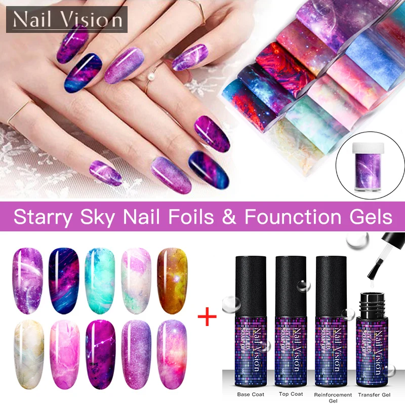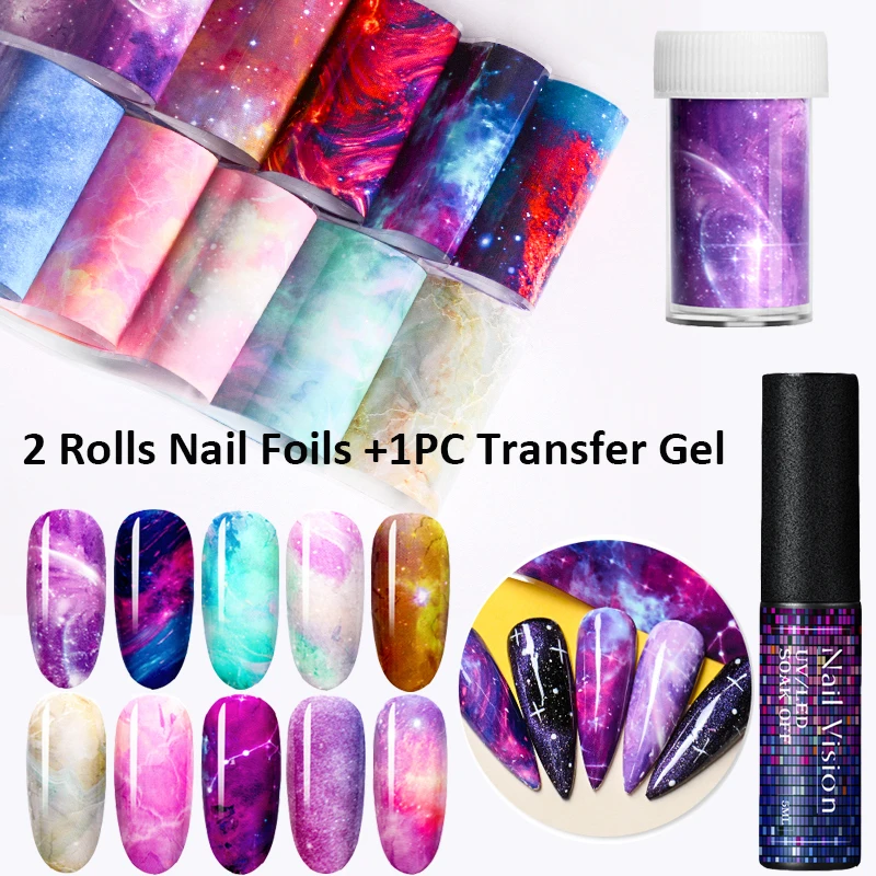 Наклейка из фольги MEET ACROSS для ногтей, клей звездное небо, пере...