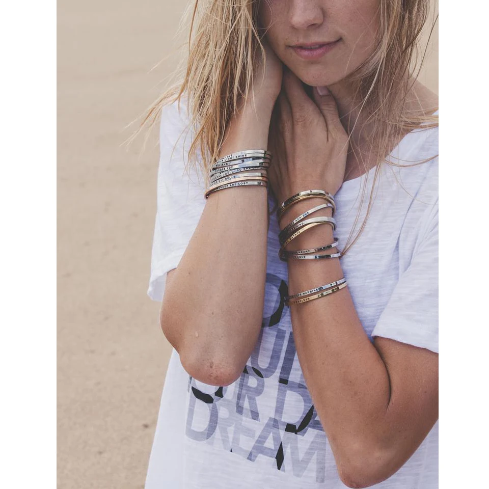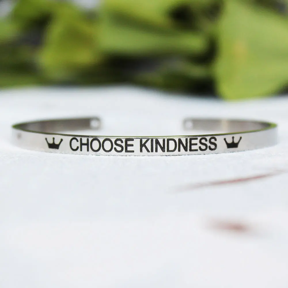 Регулируемый Нержавеющаясталь манжеты лазерной гравировкой сообщение положительный вдохновляющие Письмо браслет Сувенирный браслет для Для женщин SL-150
