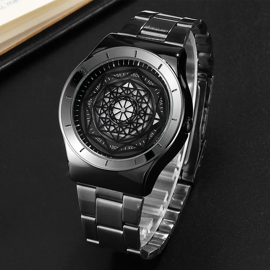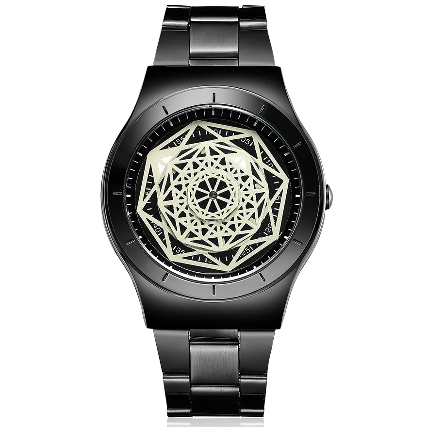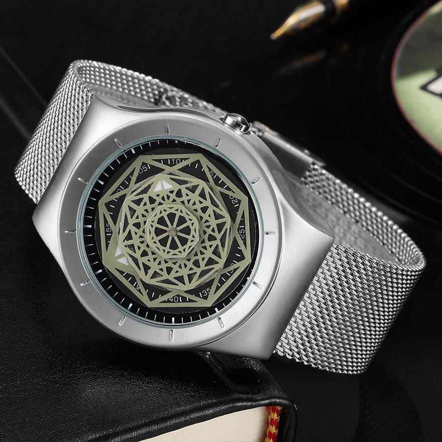 Geek часы Для мужчин минималистский Автоматическая Поворотная циферблат Кварцевые часы творческий набор мужской Сталь наручные часы Relogio Masculino