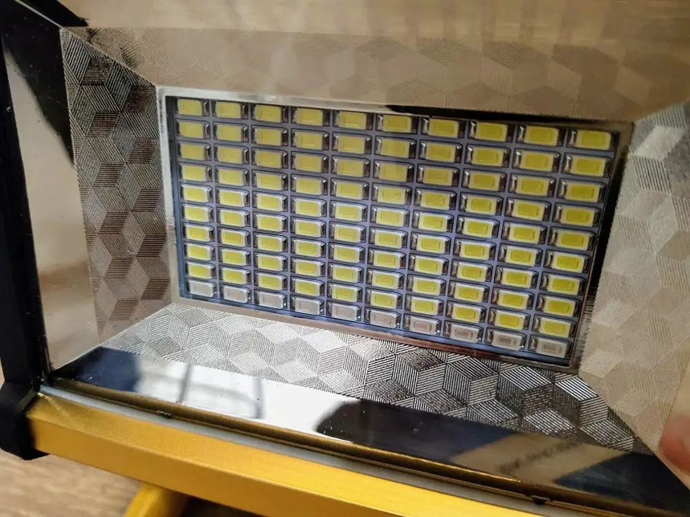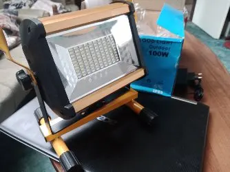 Вообщем-то хороший прожектор (мне досталась модель w 808, она без фиксирующего барашка на крышке с аккумуляторами) 100 ватт конечно же нет но светит достаточно ярко. Немного только доставка подвела, продавец с моего разрешения отправил не стандартной доставкой алиэкспресс а "СДЭК" в результате пришлось ждать курьера два месяца, а можно было получить намного раньше.
