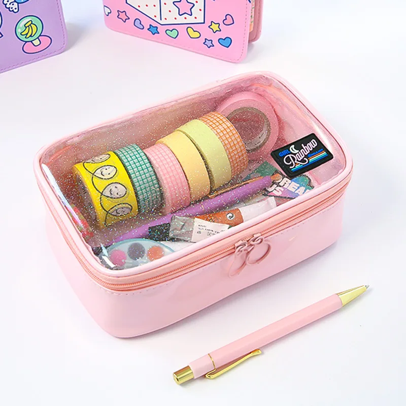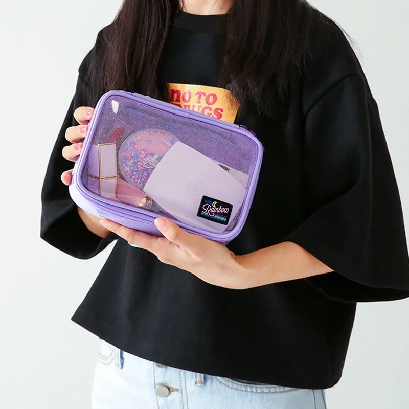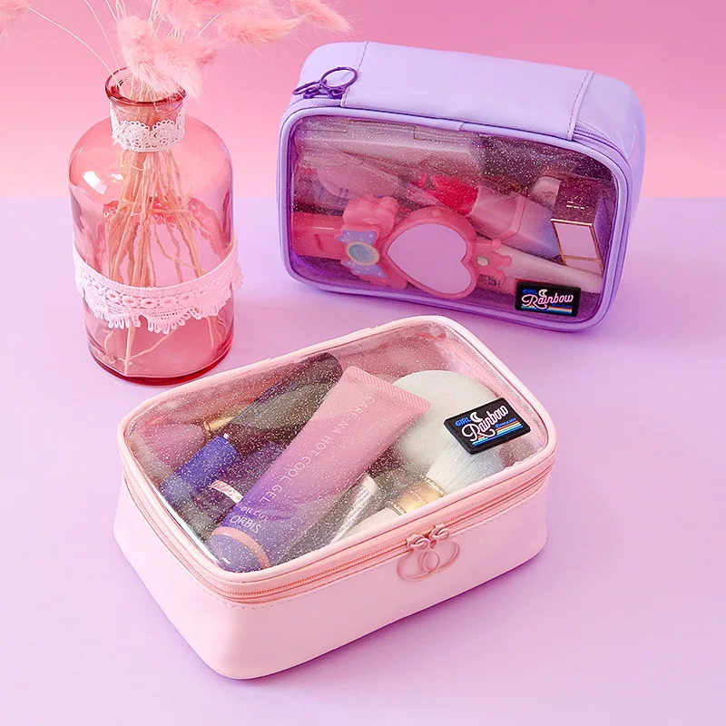 Прозрачный чехол для косметики Moon Rainbow из ПВХ, водонепроницаемый вместительный дорожный Чехол для девушек, женская косметичка