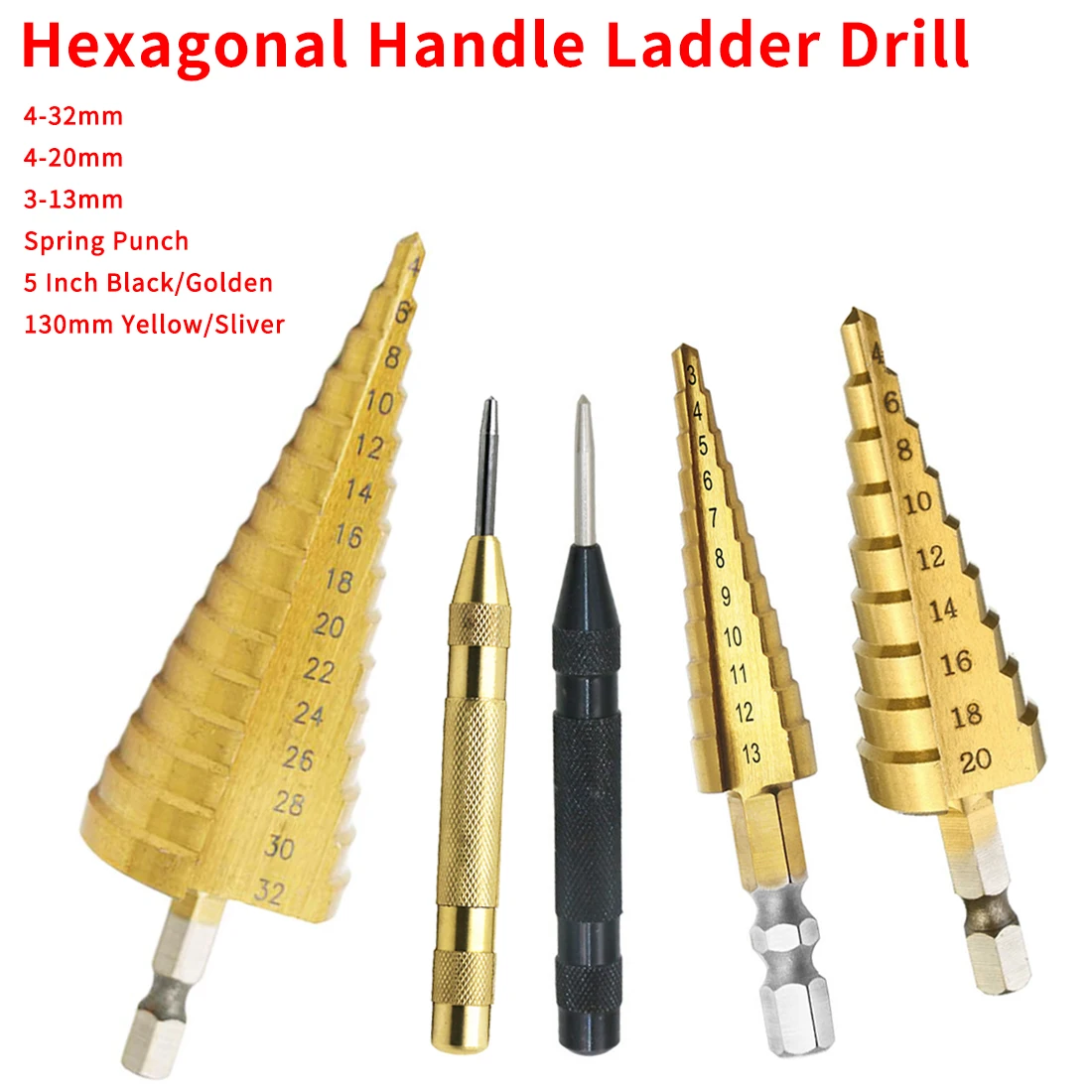 Ступенчатое сверло из быстрорежущей стали с титановым покрытием, 4-2032 мм, 5 дюймов, электроинструменты для металла, высокоскоростной резак для отверстий в стали и дереве, коническое сверло