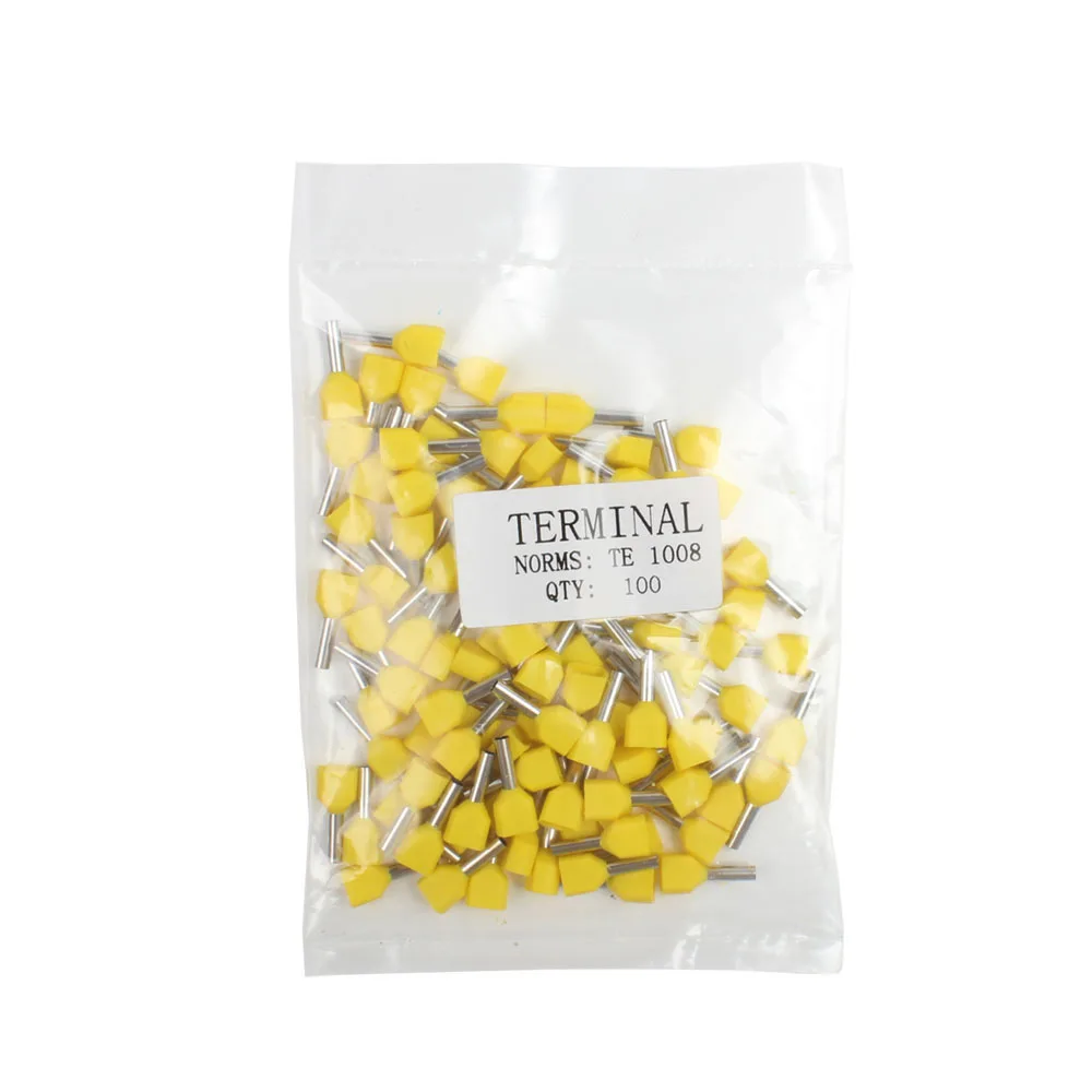 100PCS/Pack TE 1008 Two Pre-insulated Pipe-shaped End Terminal Connector/Cable Connector/Wire Connector