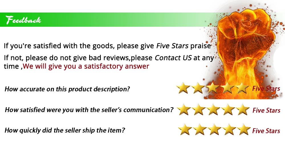 4. Мы должны с удовольствием помочь им решить любую проблему, пожалуйста, свяжитесь с нами, прежде чем оставлять нам отрицательные отзывы.