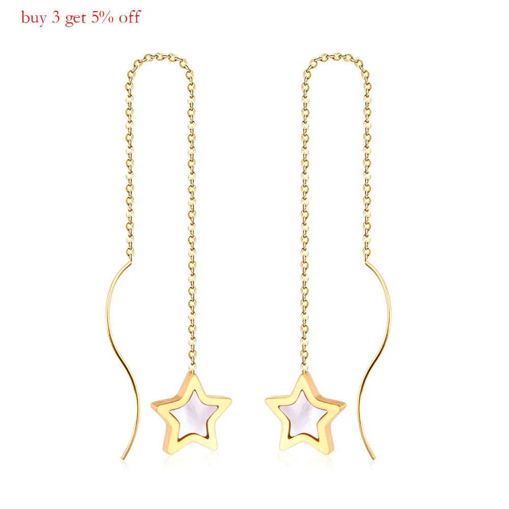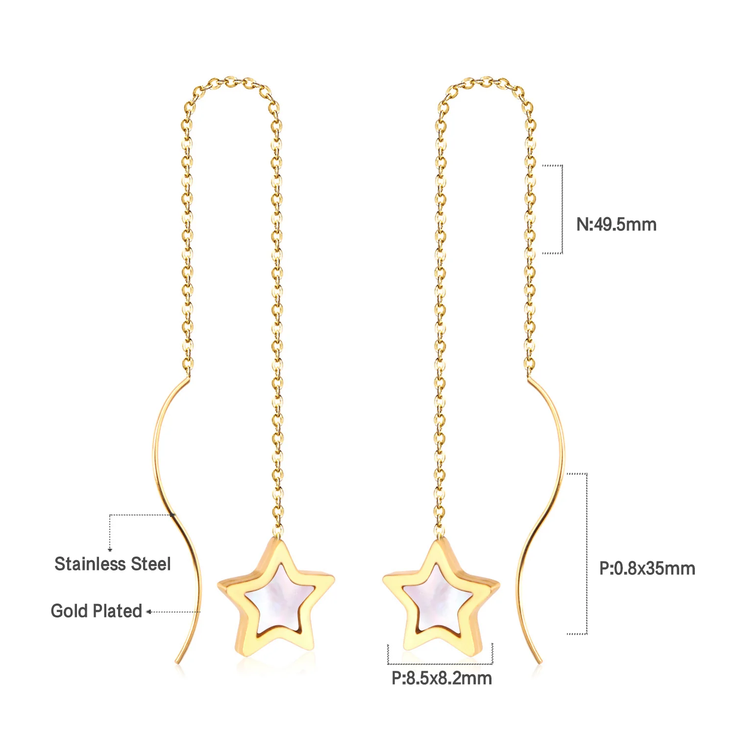 Набор ювелирных изделий из нержавеющей стали, женские серьги-подвески, в форме звезды, с ракушками, с кисточками, золотистые, 2020