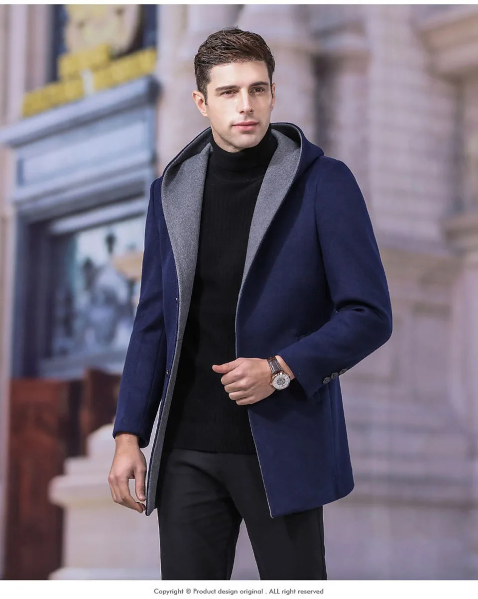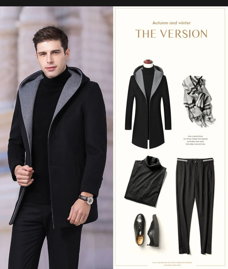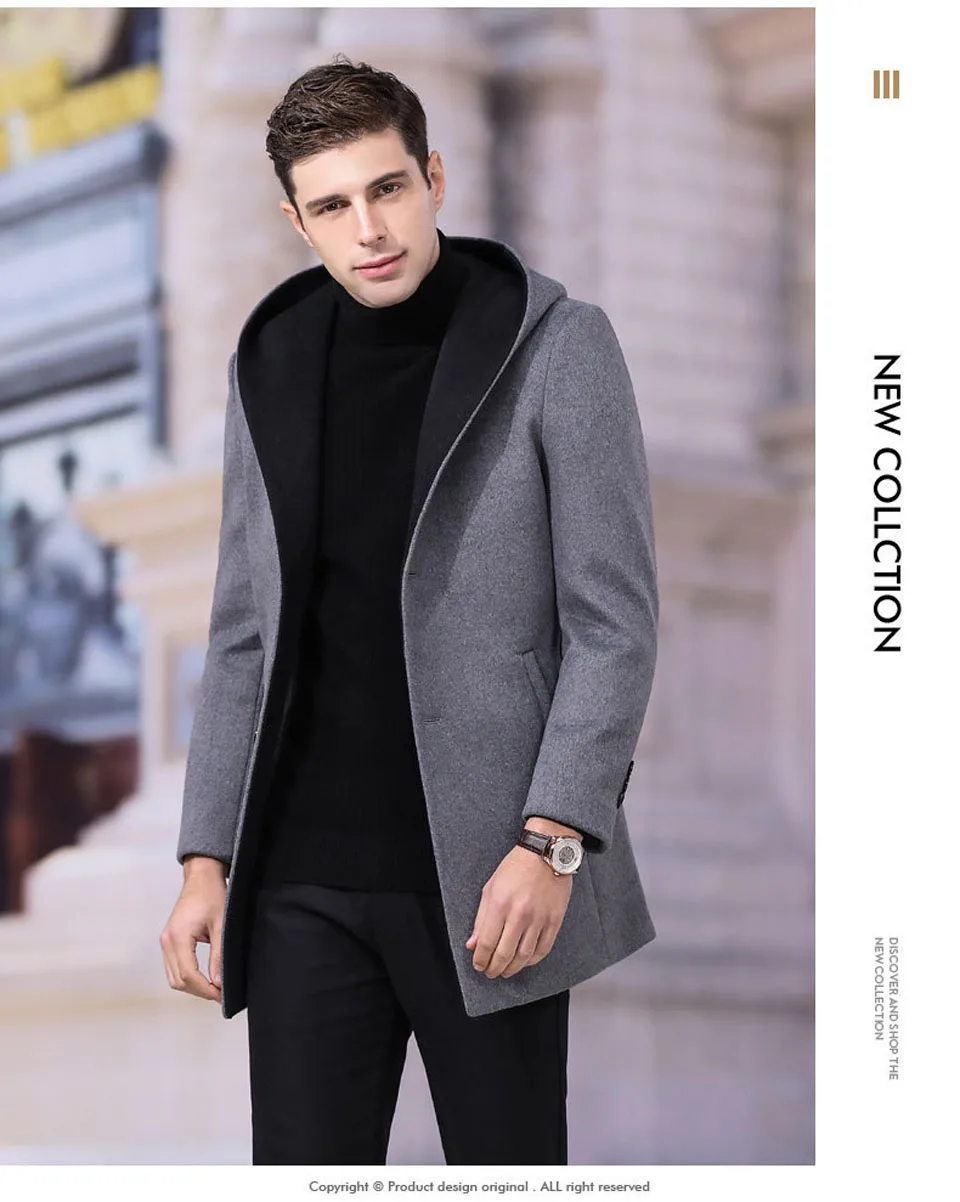 Шерстяное мужское пальто Holyrising с капюшоном, зимнее мужское шер...