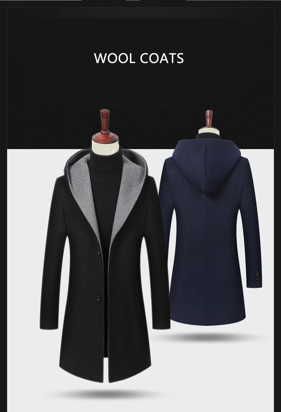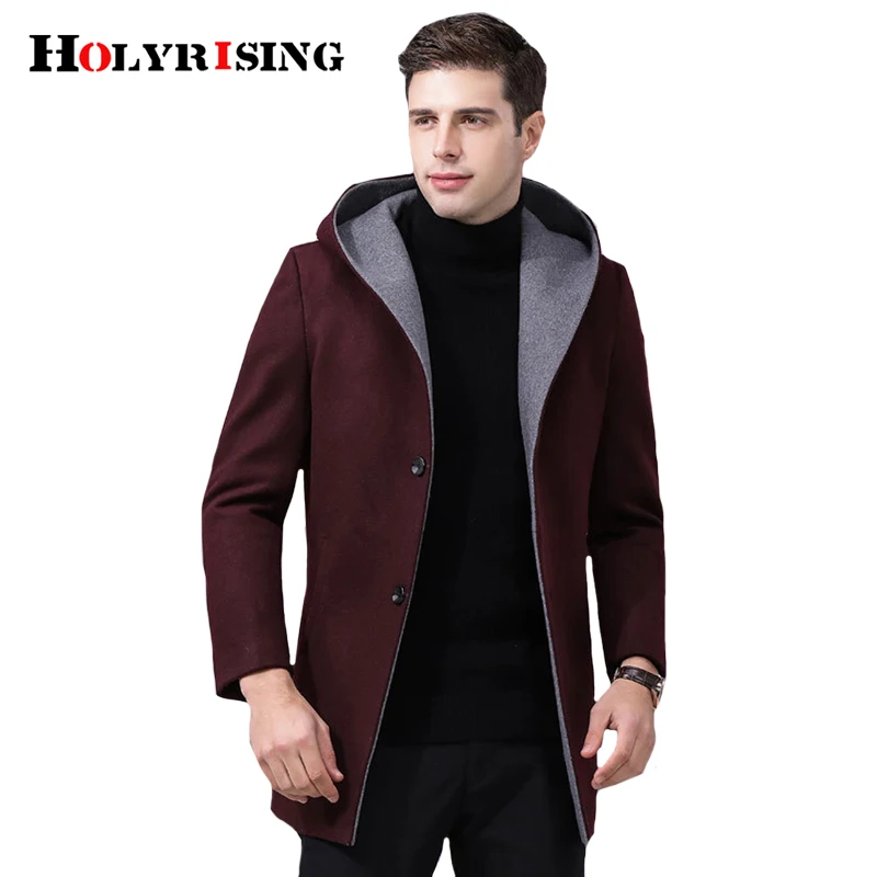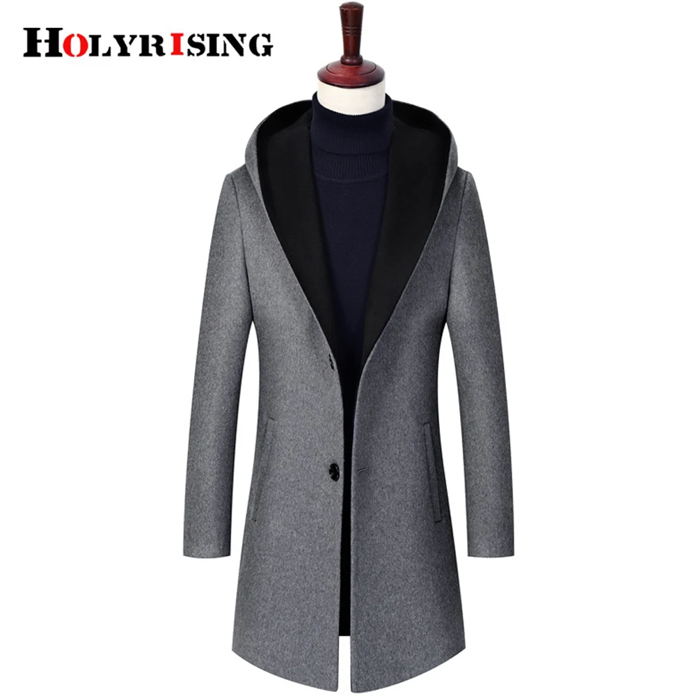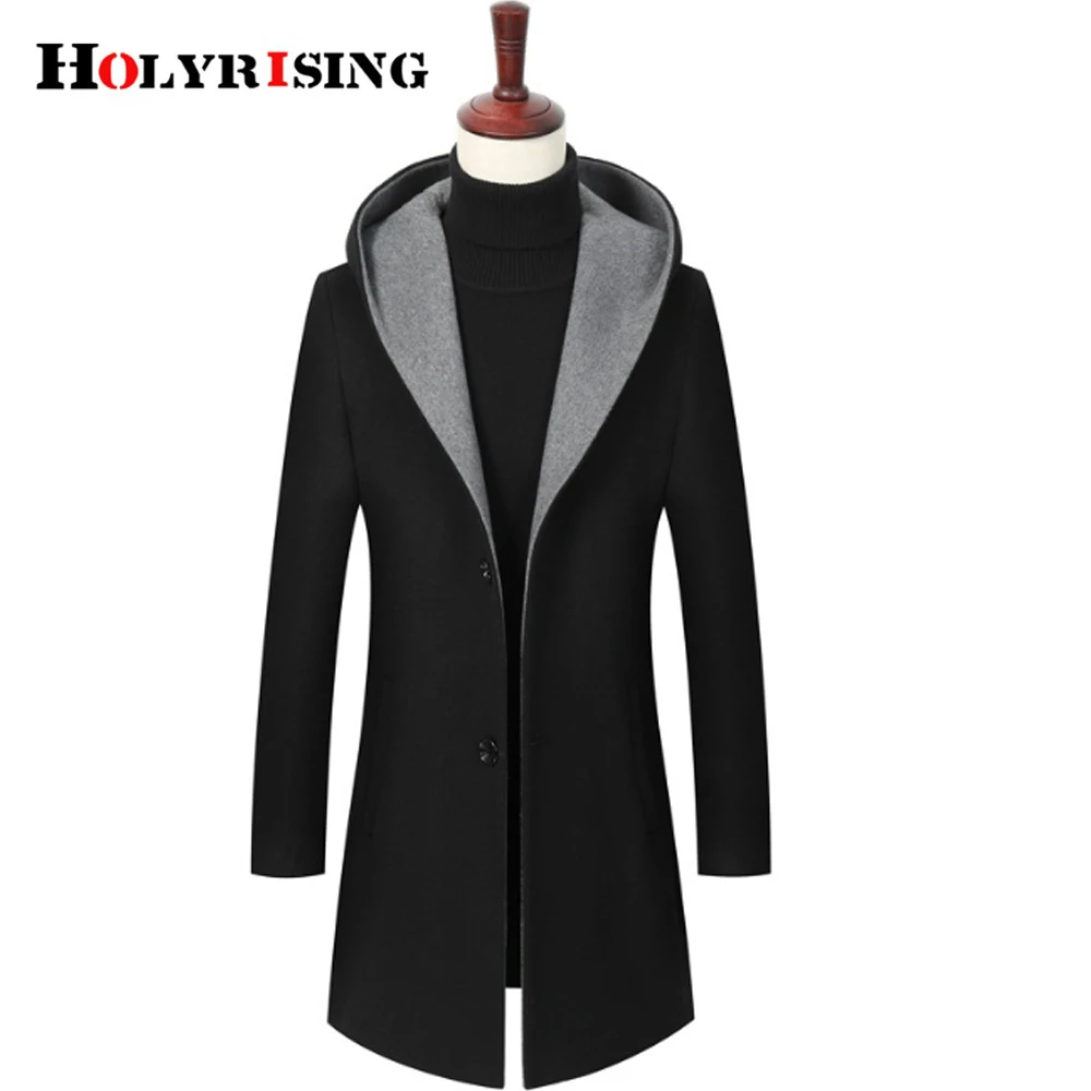 Holyrising, мужские шерстяные пальто, с отложным воротником, с капюшоном, Мужское пальто, тонкое, Chaqueta Larga, теплое пальто, Casacos, на молнии, мужская одежда 19011-5
