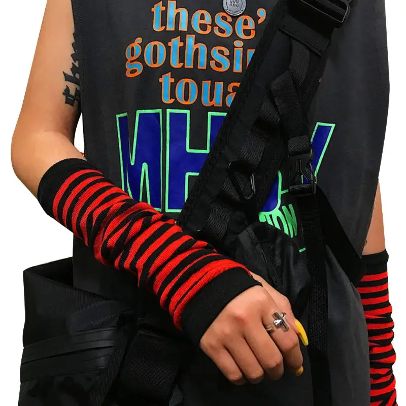 Женские Длинные вязаные перчатки без пальцев, с принтом в полоску, выше локтя, зимние эластичные рукава с отверстием для большого пальца