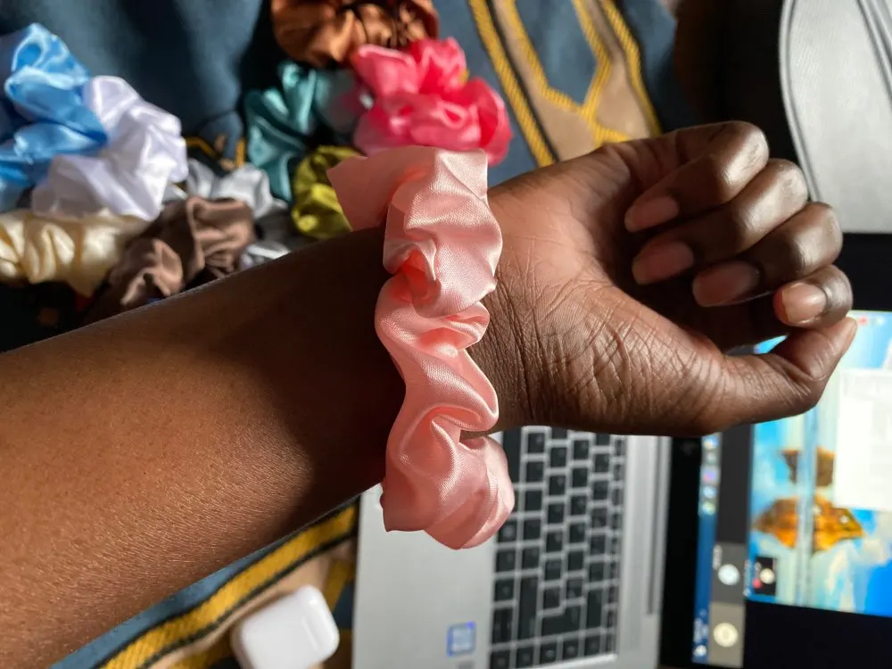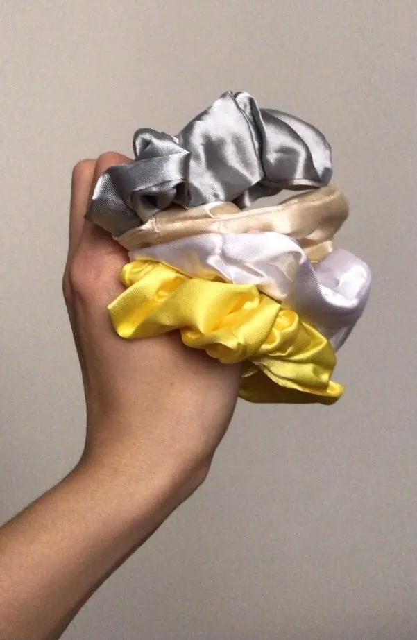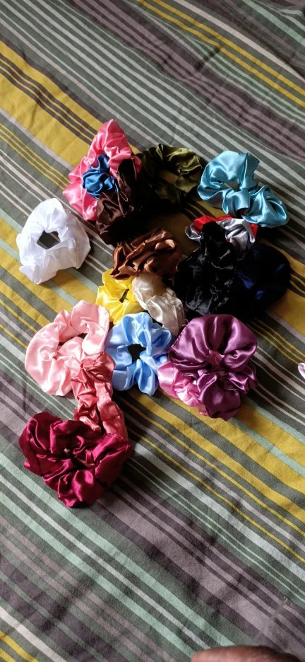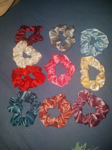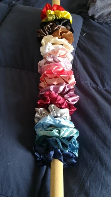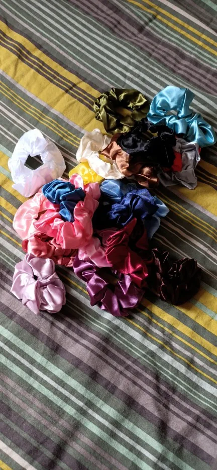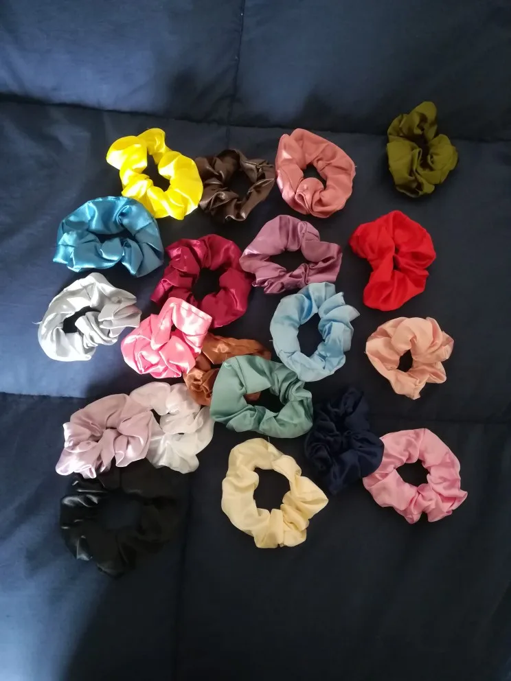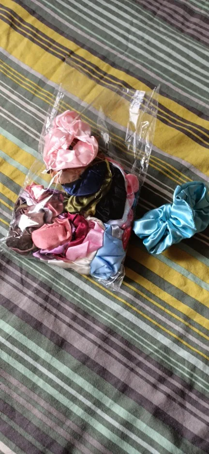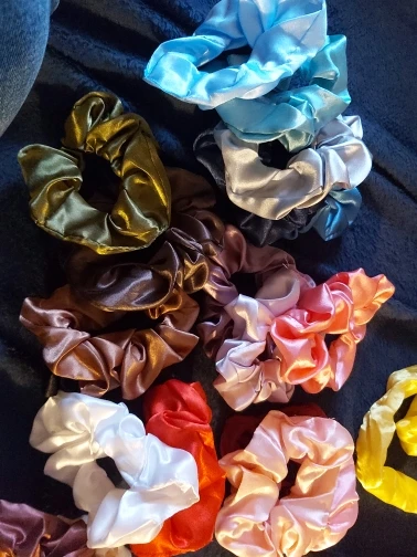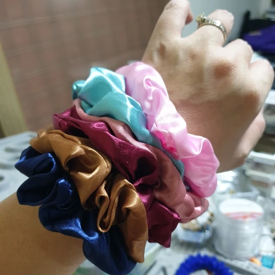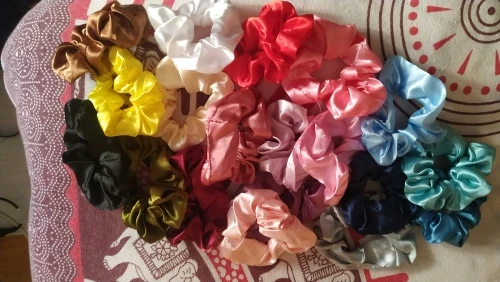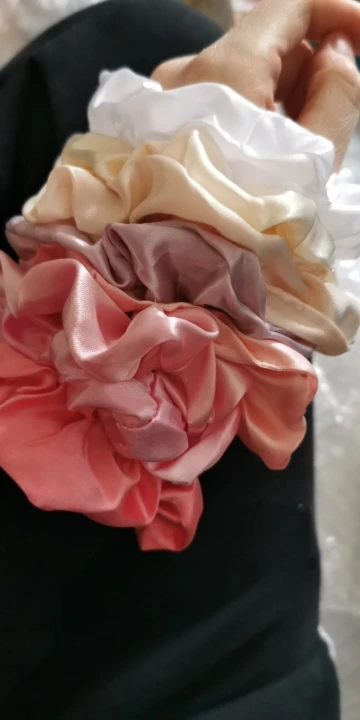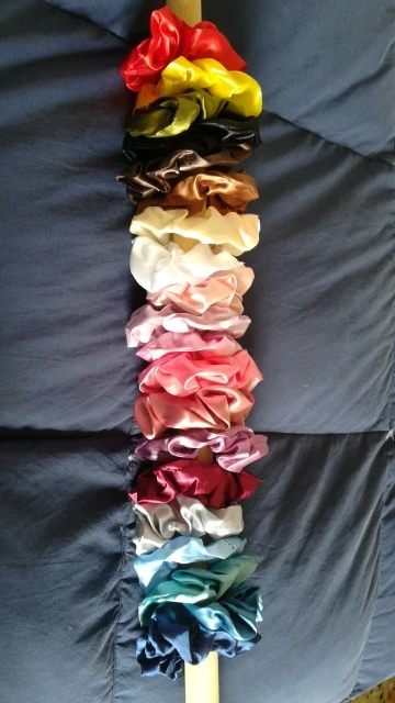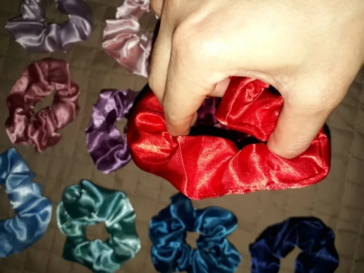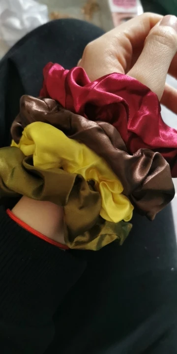 Dommage qu'on se retrouve parfois avec plusieurs scrunchies de la même couleur ou presque identique, sinon très mignon et se porte bien au poignet aussi
