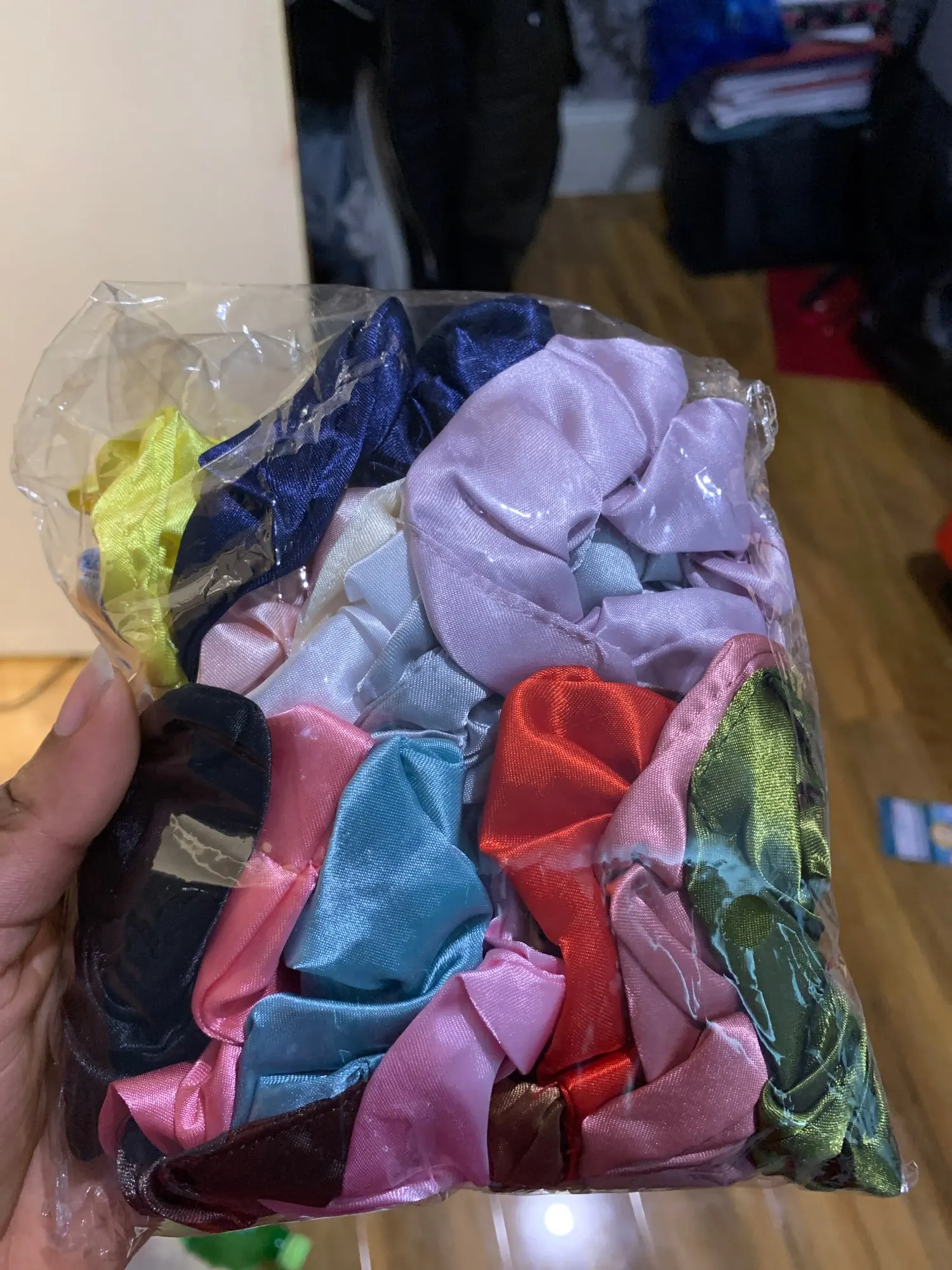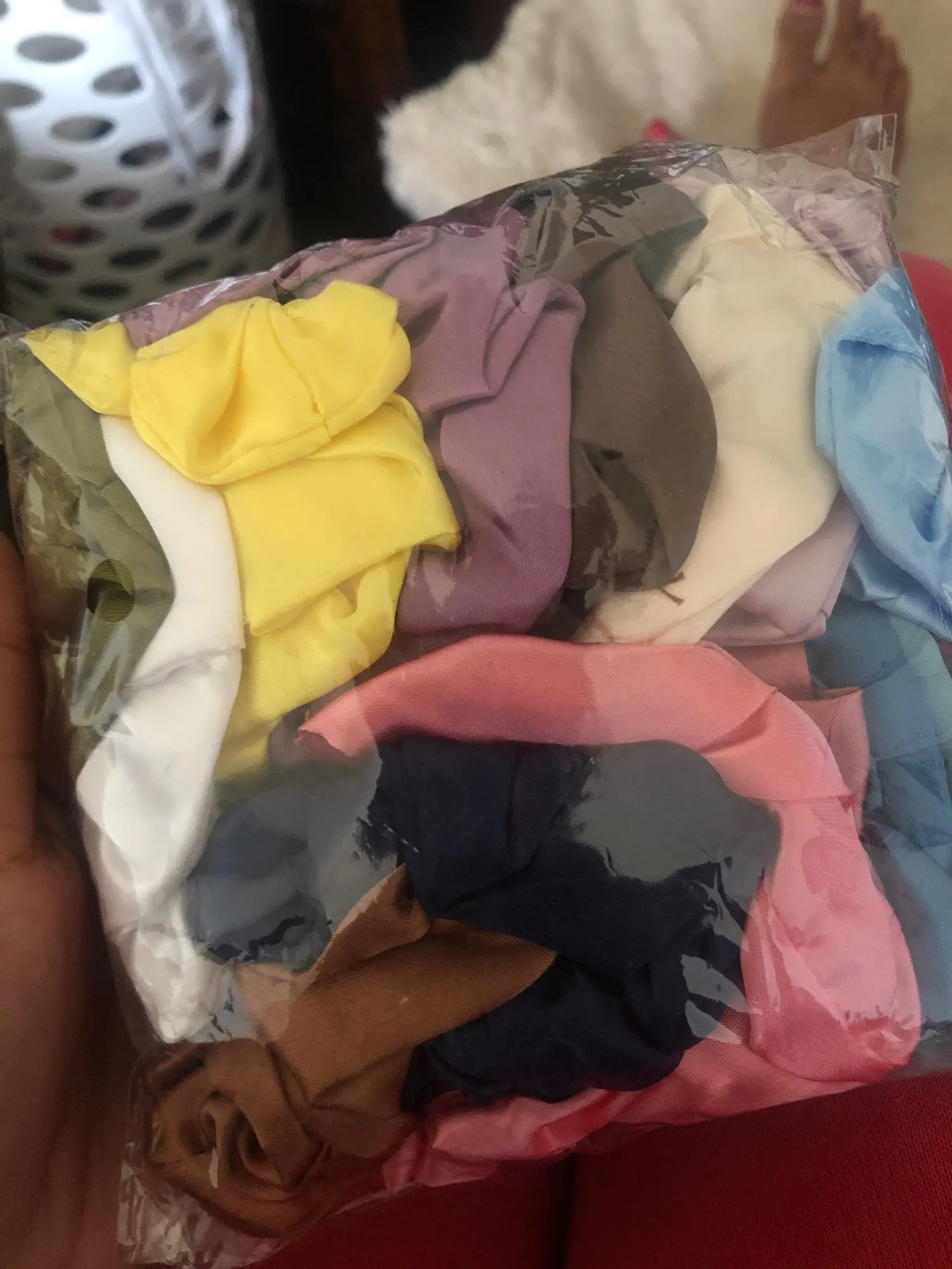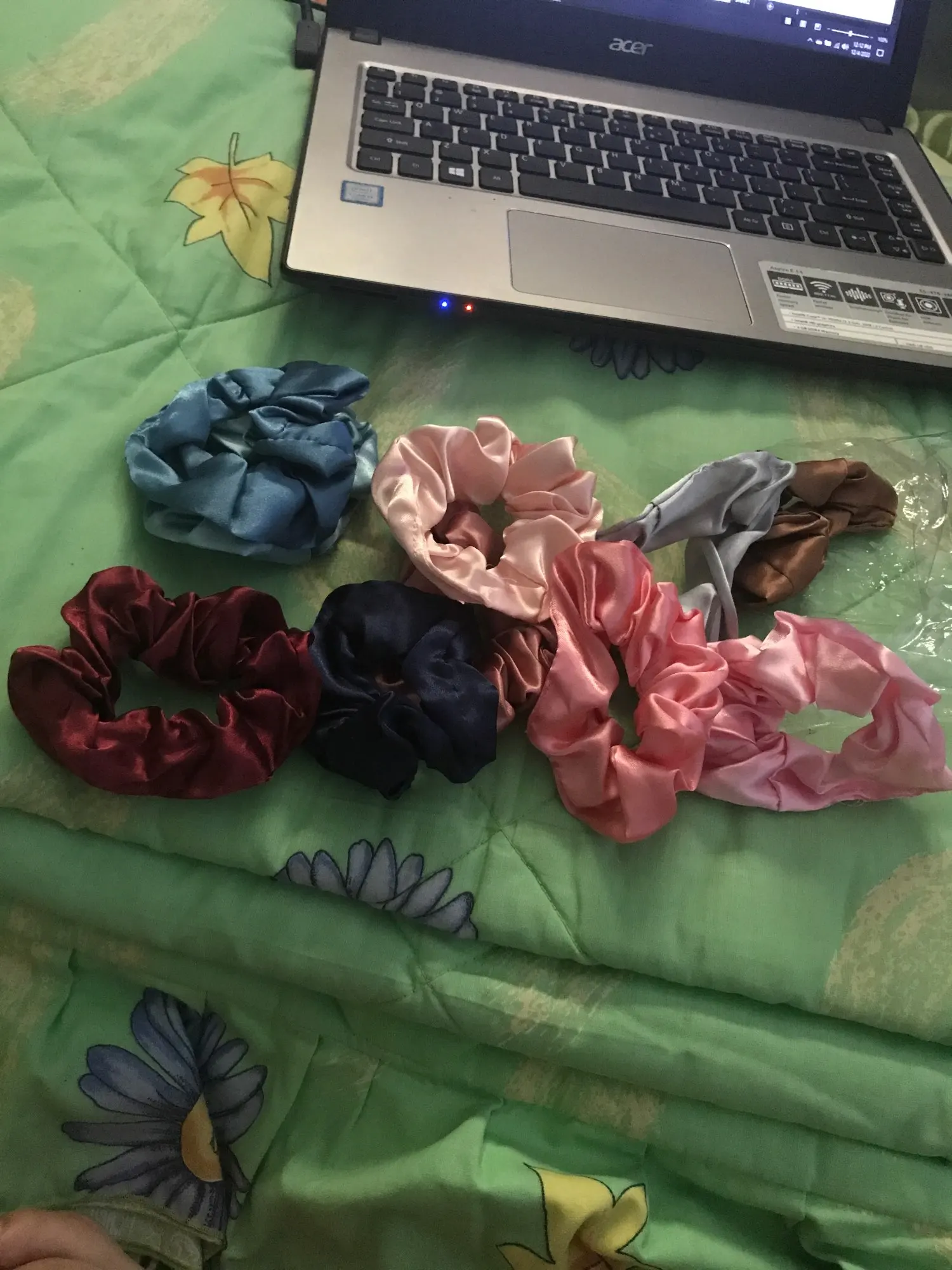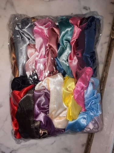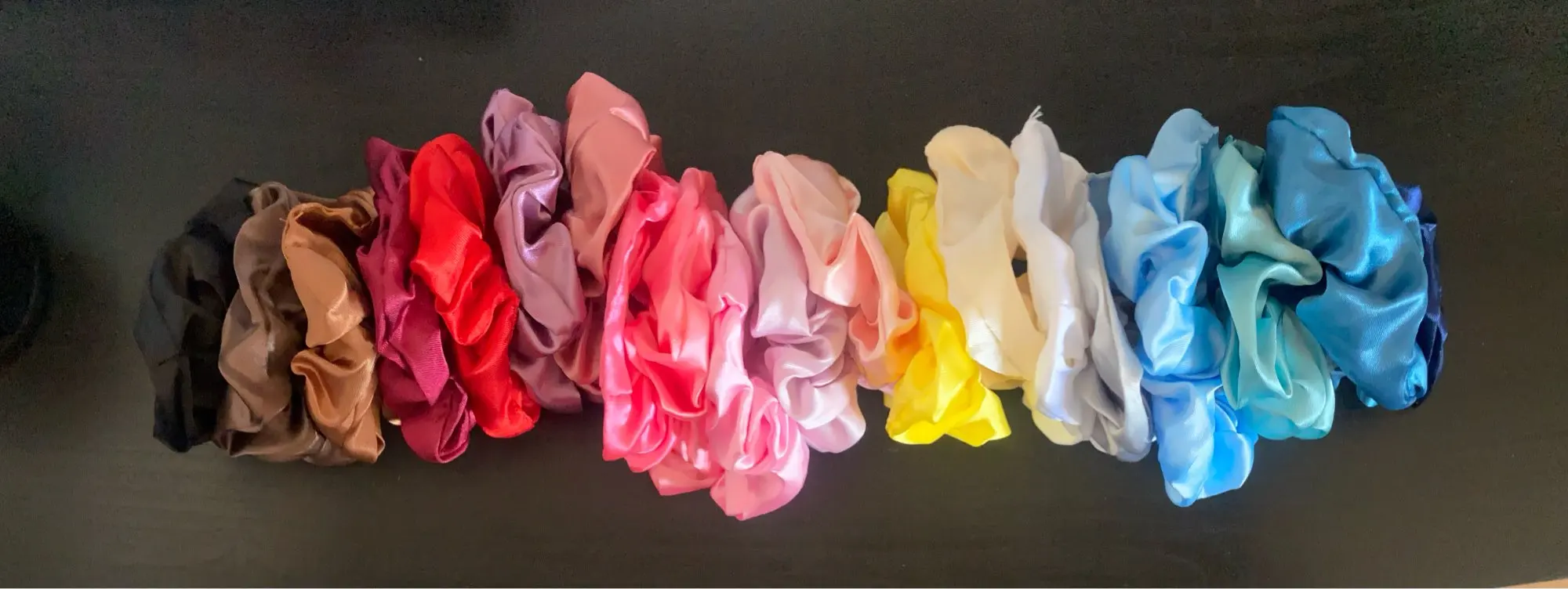 Dommage qu'on se retrouve parfois avec plusieurs scrunchies de la même couleur ou presque identique, sinon très mignon et se porte bien au poignet aussi