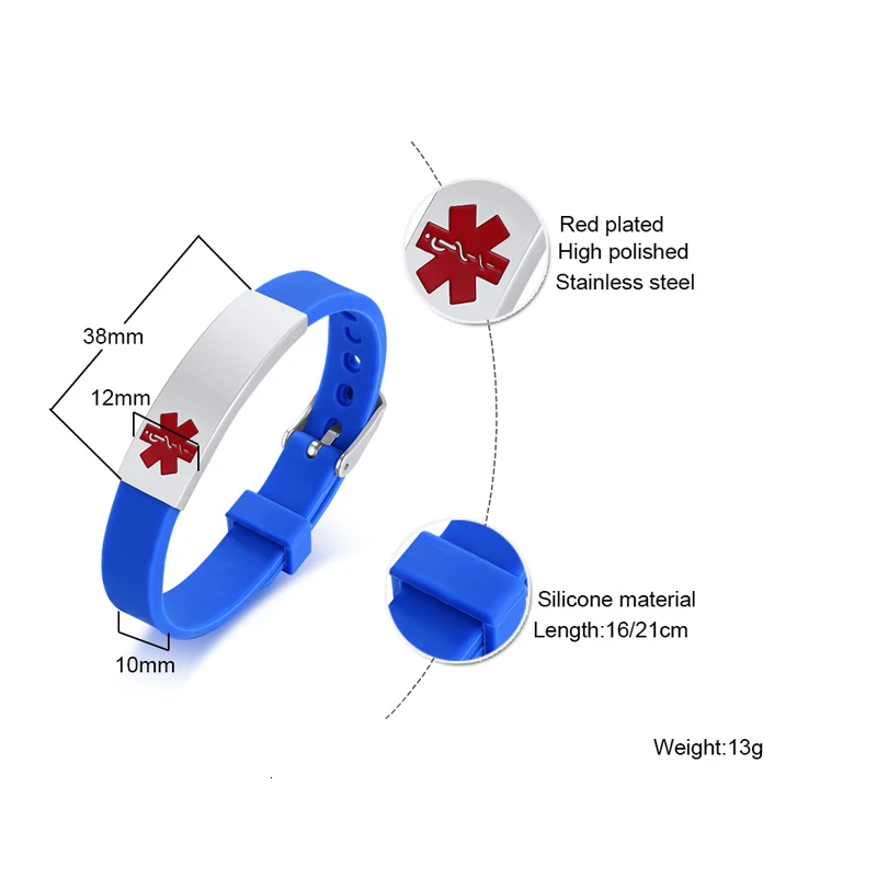 Медицинский оповещение ID браслет для детей мужчин женщин персонализированный диабет лед силиконовый браслет Тип 2 под заказ Гравировка
