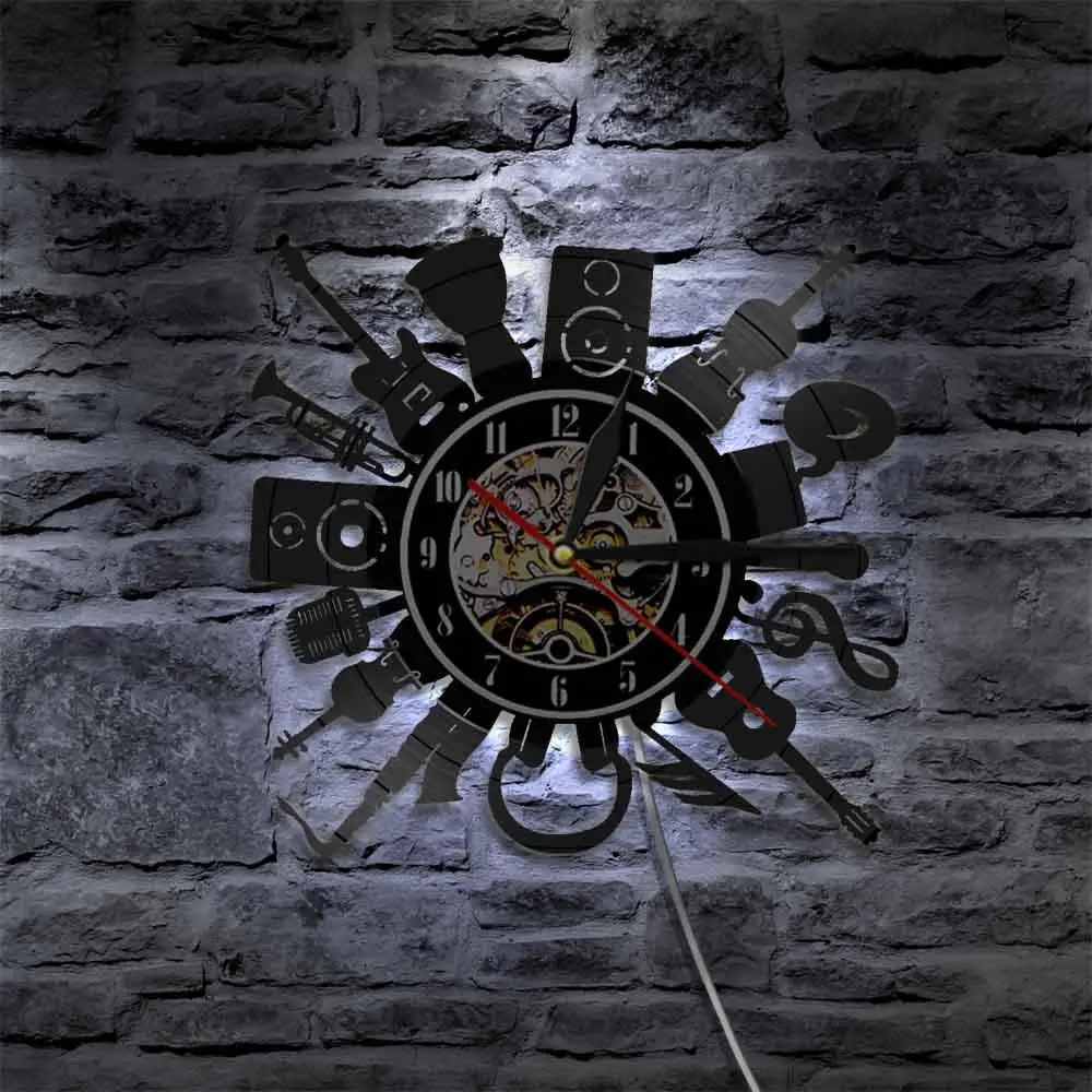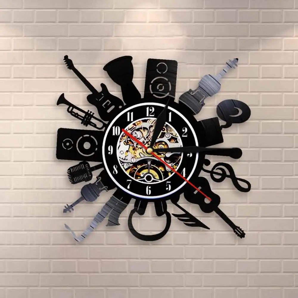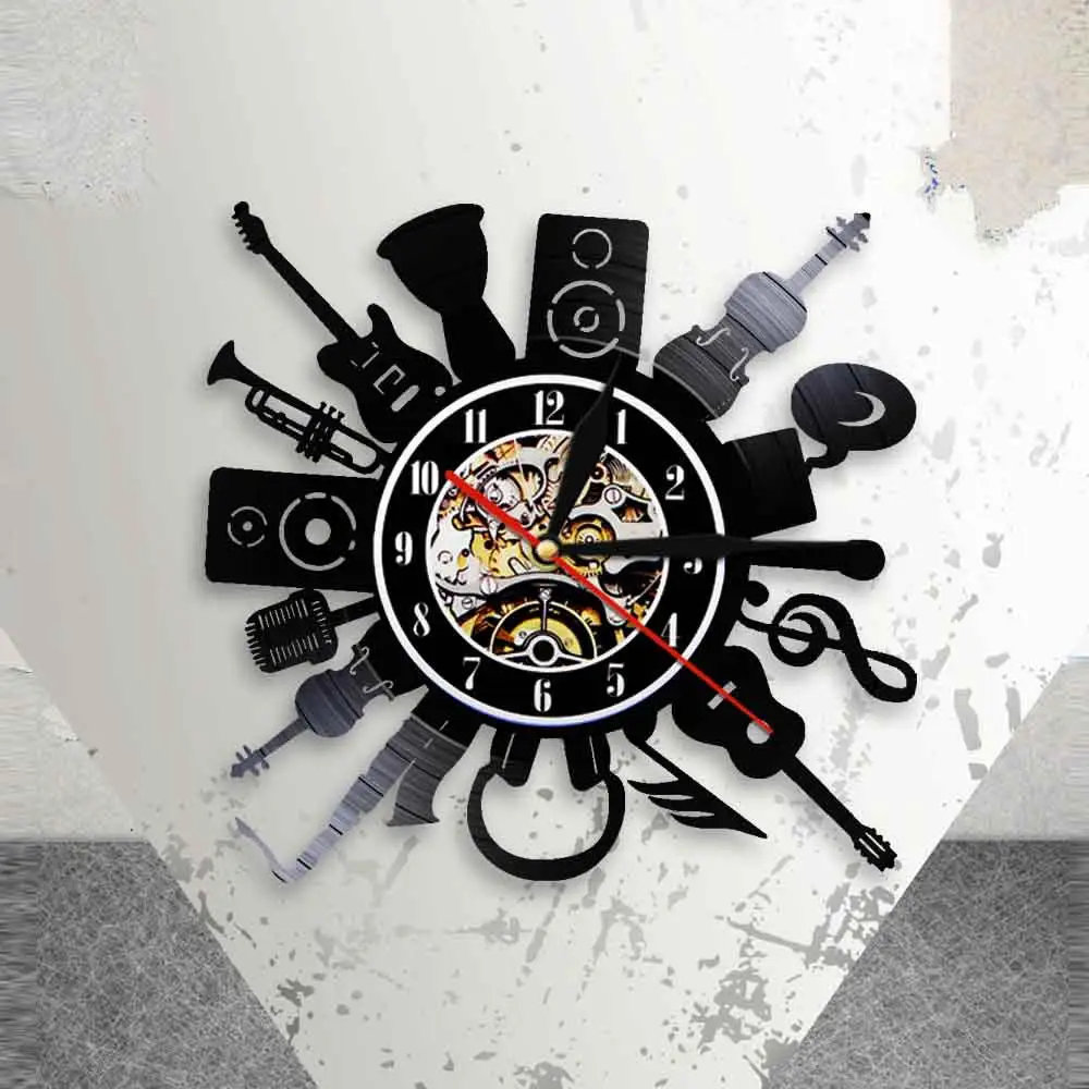 Акустическая электрическая гитара, Настенный декор, настенные часы, панк-рок n Roll, тяжелый металл, музыка, виниловая запись, настенные часы, музыкальный браслет, подарок
