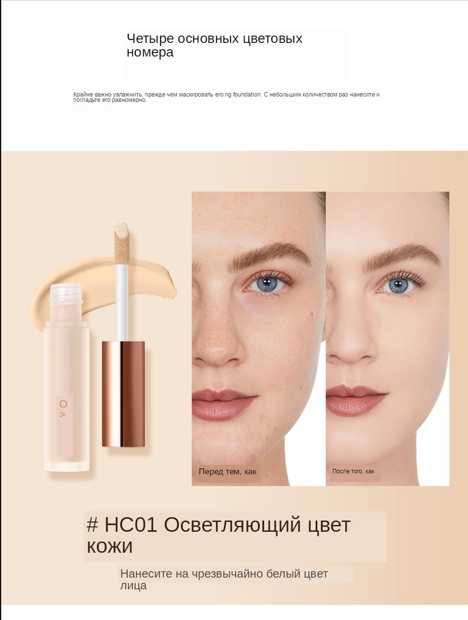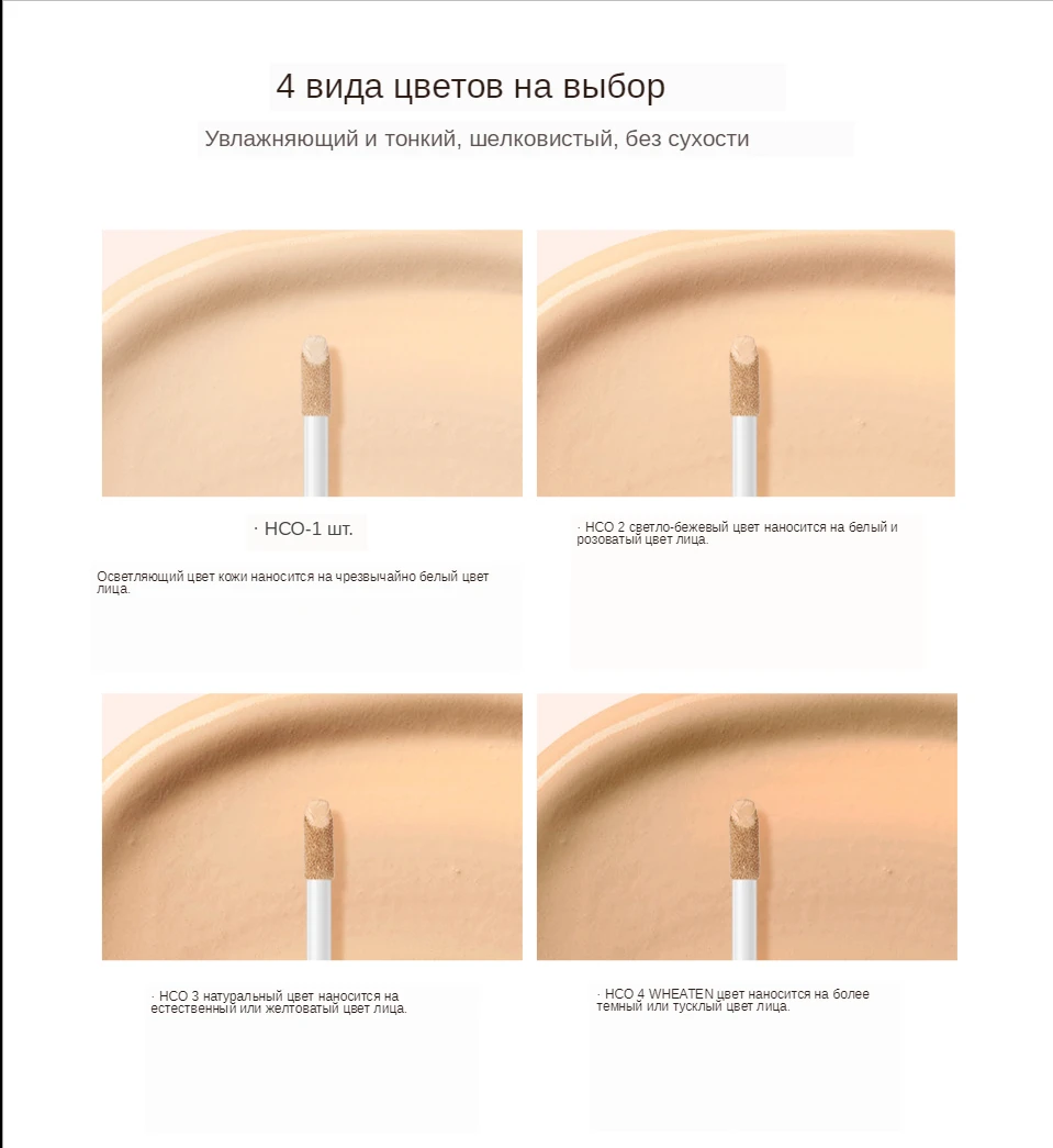 Имеет тонкий, почти незаметный аромат. Консистенция у крема плотная, без явного запаха. Магазин O.TWO.O Official Store. Я заказала себе цвет HC 03. Для моей кожи он подошёл отлично. Лежит на кожи ровно, не скатывается в течении дня. Тюбик крема тонким с аппликатором. Наносится небольшими капельками под глаза, крылья носа, проблемные участки и прочее, аккуратно вбивается коньчиками пальцев. Консилер хорошо перекрывает покраснения, высыпания и синяки. Пришло в упаковке, запасной в слюду. Упаковка содержит всю необходимую формацию, включая сроки годности. Коробочка запаяна в слюду.