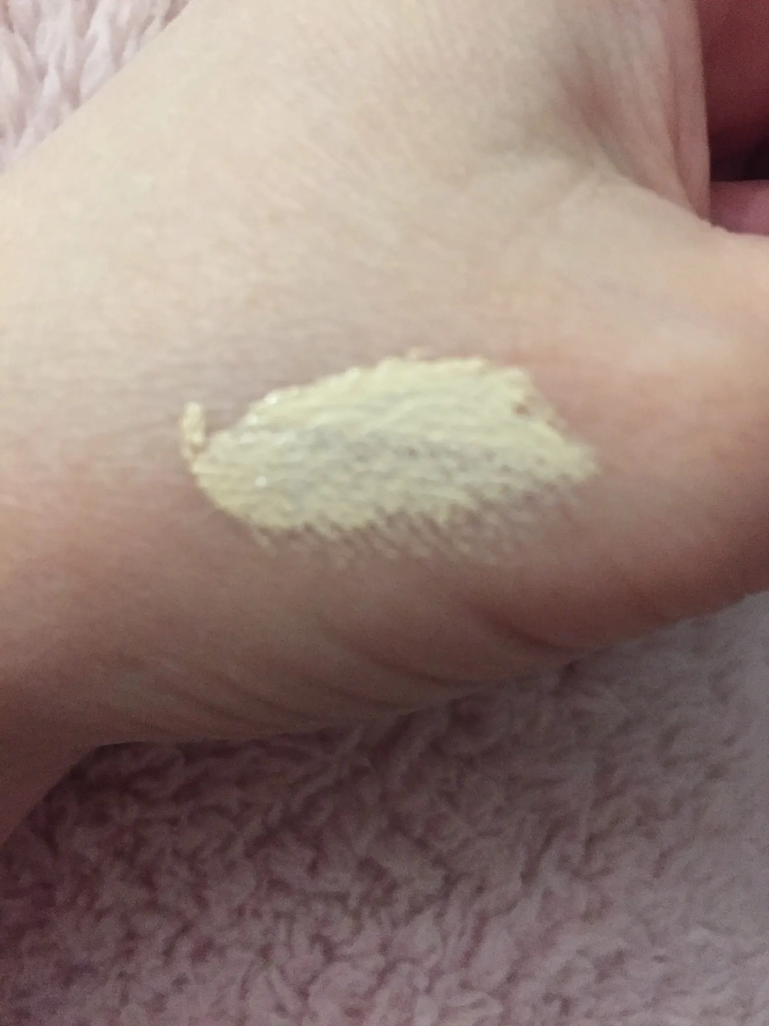 Приятный запах.По консистенции как пудра которая сохнит