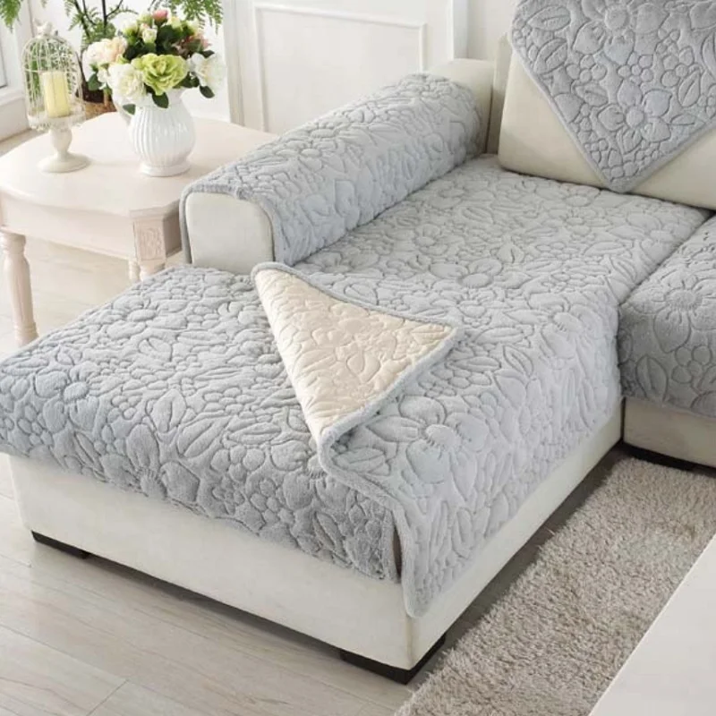 Серый плюшевый чехол для дивана в гостиную, зимнее покрывало для ди...