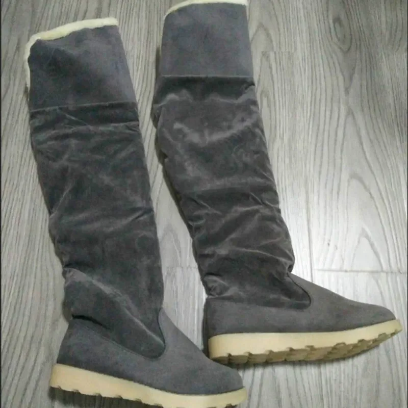 Fujinзимние сапоги; Женские плюшевые теплые ботинки; Прямая поставка; Модная парусиновая обувь на плоской подошве с круглым носком; Повседневные Замшевые Сапоги выше колена для студентов
