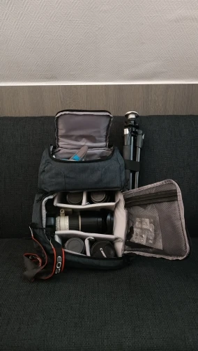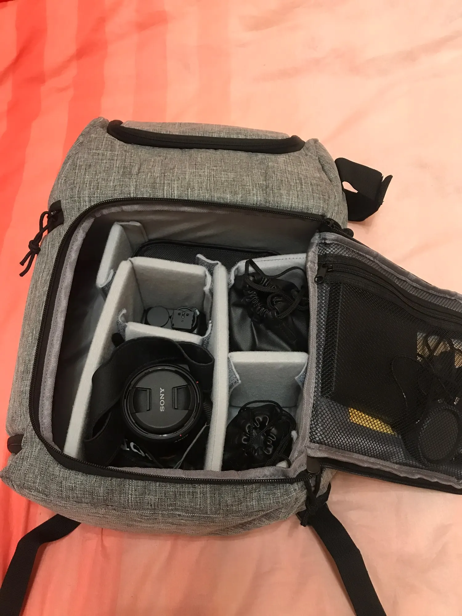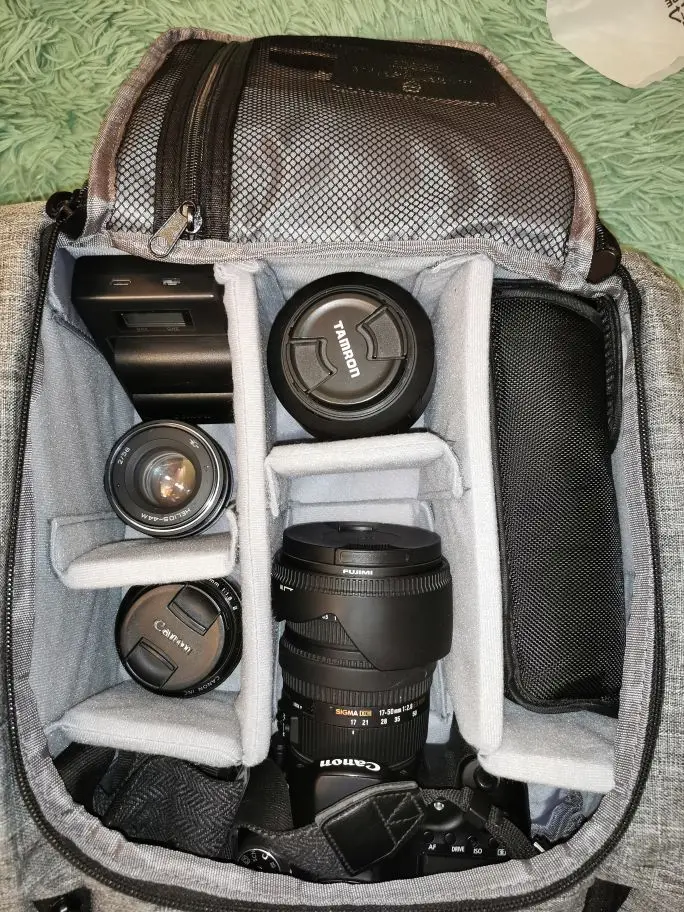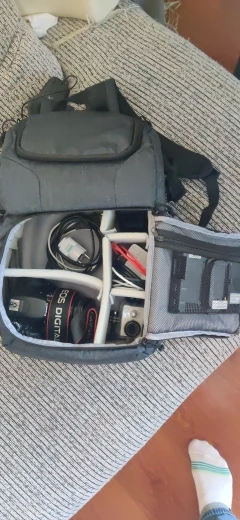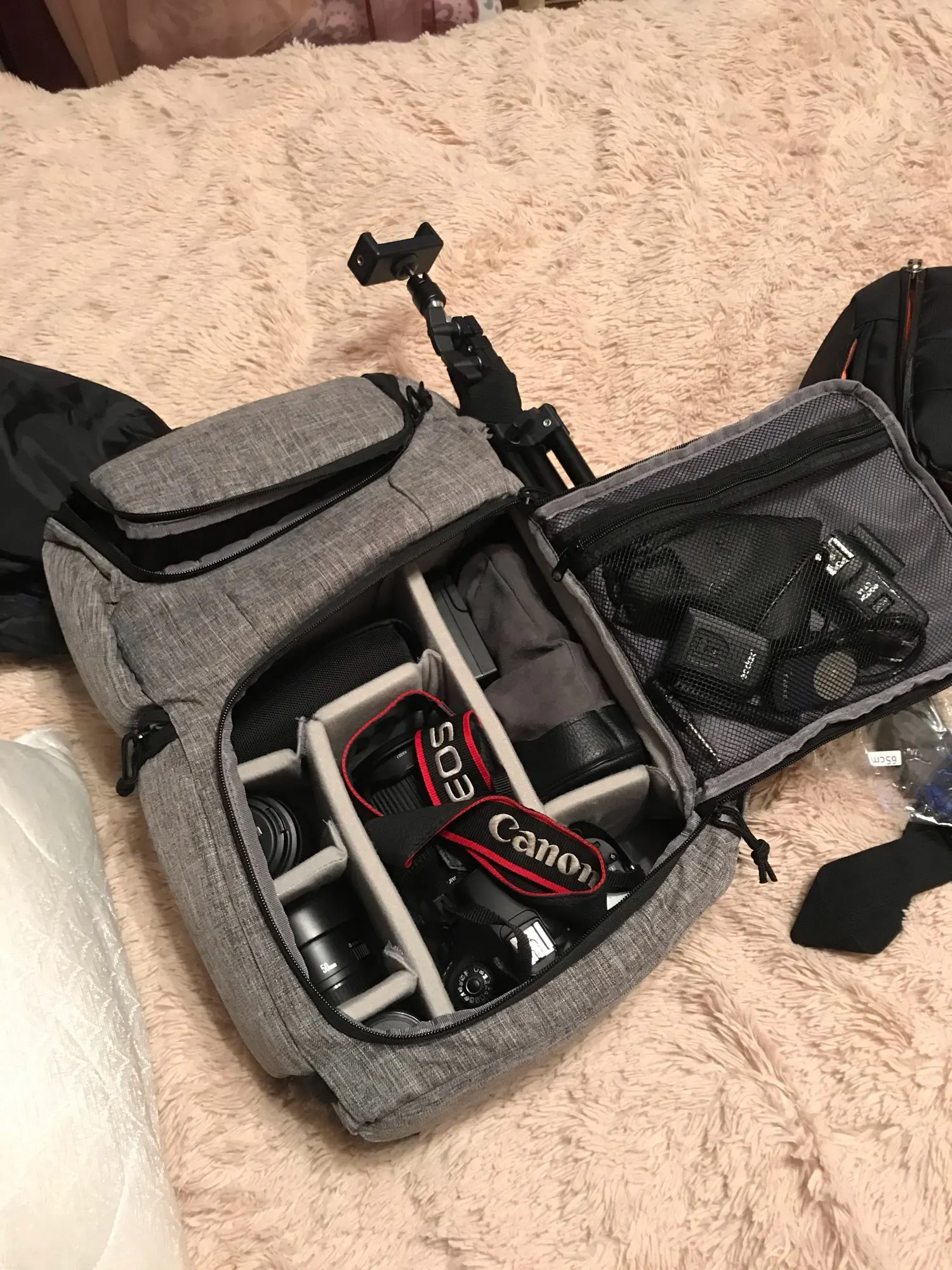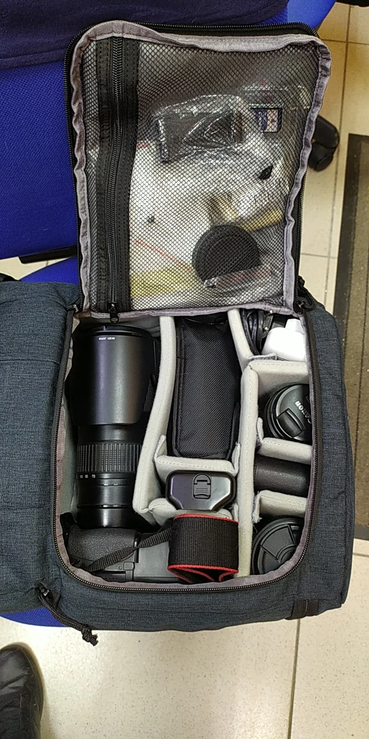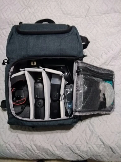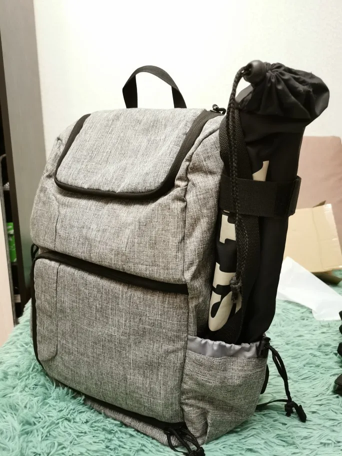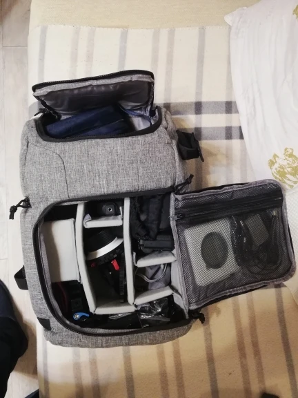 Рюкзак пришёл на почту, с опозданием на семь дней. Но в целом это не критично. Брал рюкзак под видео сьёмку, подрузамевая что будет две камеры, три объектива, стабилизатор, накамерный монитора, две радио петлички и по мелочи. Увидев рюгзак, сначало подумал что он маленький, попытался засунуть стабилизатор, он не влез. Позже подумал, и посмотрев как ставятся отделы всё уместилось. Думаю если ещё немного все расортировать, то ещё что можно положить. Moza Aircros 2 залезла без всех площадок в боковой карман. Хороший рюгзак с хорошей пошивкой, если под много оборудования то в притык, но уместить можно.