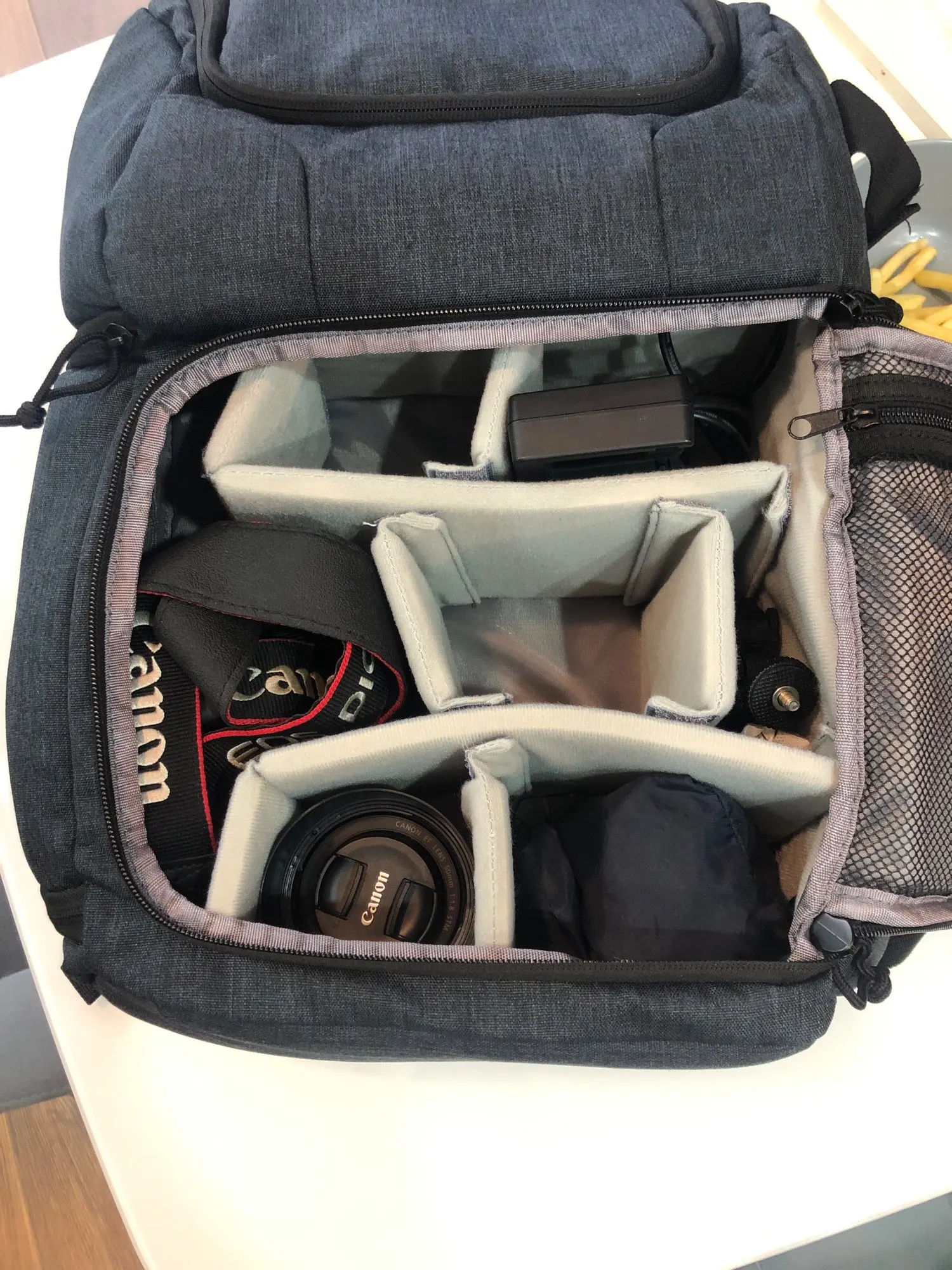 Отличный рюкзак. Качественно прошит, ткань плотная. Перегородки на липучках, держаться крепко. Рюкзак очень вместительный, поместилась камера, фотовспышка, пара объективов и ещё осталось свободное место. За такую цену, это просто находка. Доставка в РБ 67 дней, многовато, но со сложившейся эпидемиологической ситуацией, терпимо. Качественный товар, отличный продавец.