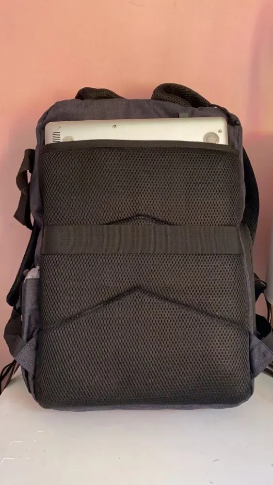 Рюкзак, на вид, крепкий, удобный, пригодный для использования с ПК и зеркальными камерами. Завязывает его вокруг груди. Отсек для ПК вмещает большинство ноутбуков размером 13 дюймов.