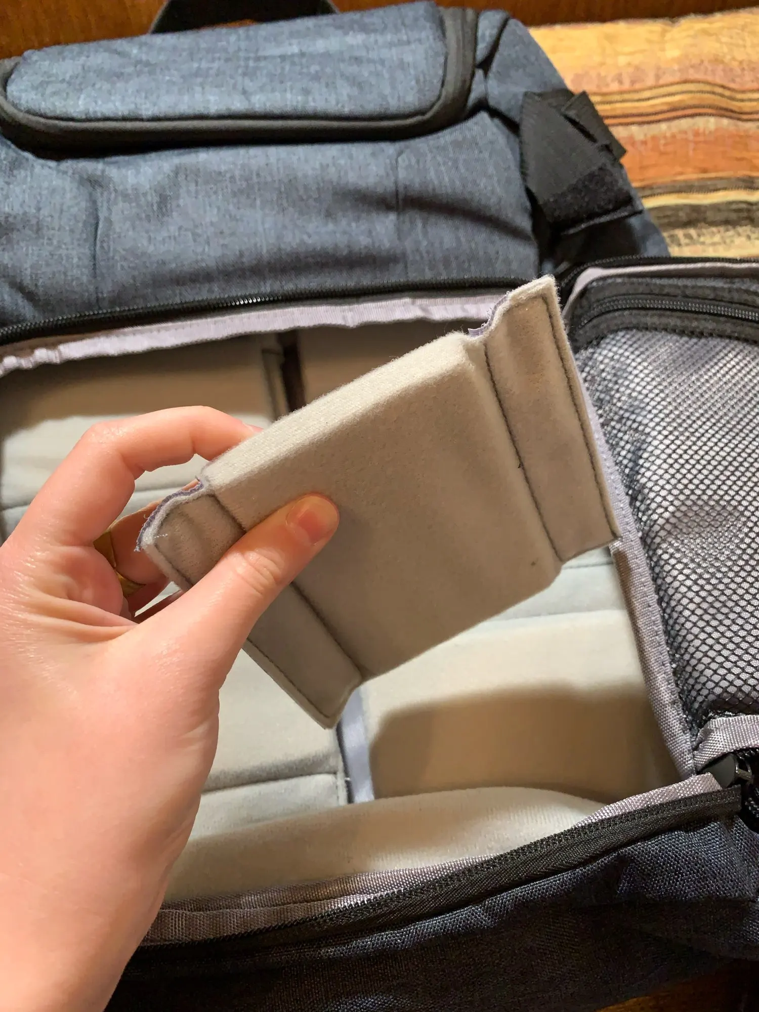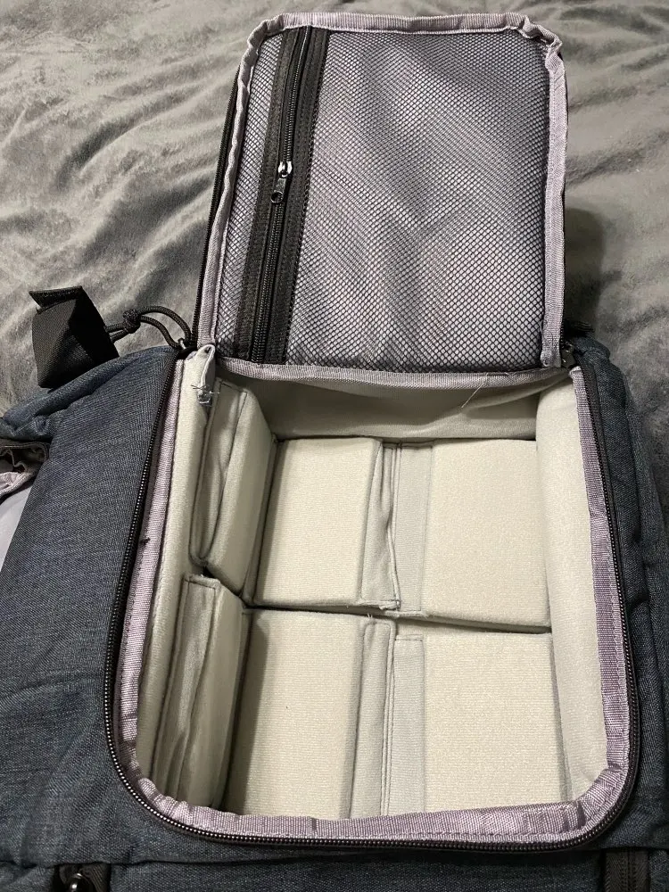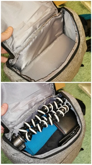 Отличный фото рюкзак за свои деньги, в РФ аналогичные почти в 2 раза дороже. Внутренняя перегородка, которая делит нижний и верхний отсек, пришита к спинке. Так что она и держится хорошо (надёжнее, чем были бы просто липучки) и "убрать" её можно, просто прислонив к спинке. Тогда получаем сплошной один объем. Молнии хорошие, материал тоже.