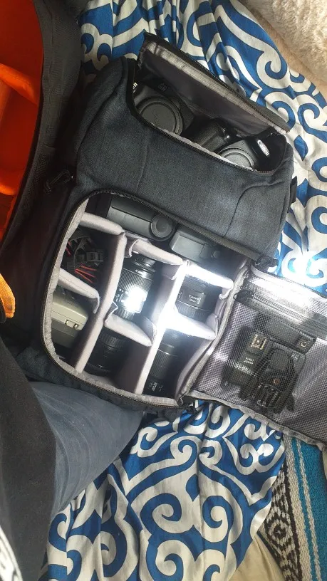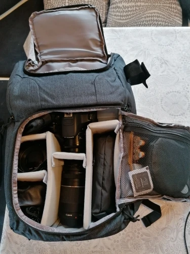 Отличный рюкзак для фототехники! Поместилось все, что необходимо. Качество хорошее. Можно разместить внутри так, как душе угодно. Мне хотелось, чтобы мог оперативно доставать камеру и как раз для этого сбоку можно открыть рюкзак. Закинул на одно плечо, расстегнул кармашек и фотоаппарат уже в руках. Отлично! Рекомендую к покупке. Пришло очень быстро, буквально через неделю.
