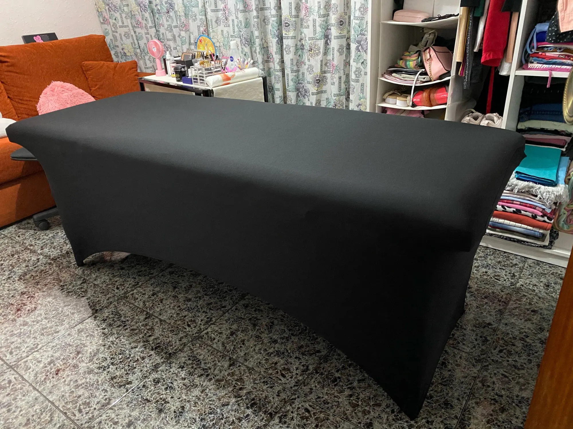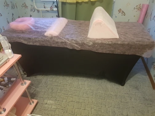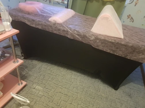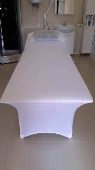 Подходит на массажный стол. Скрывает все дефекты стола. Советую. Ткань плотная и эластичная.