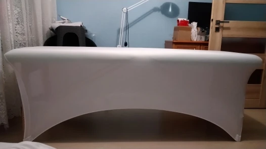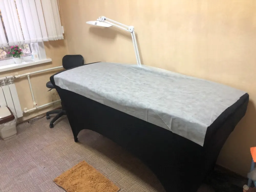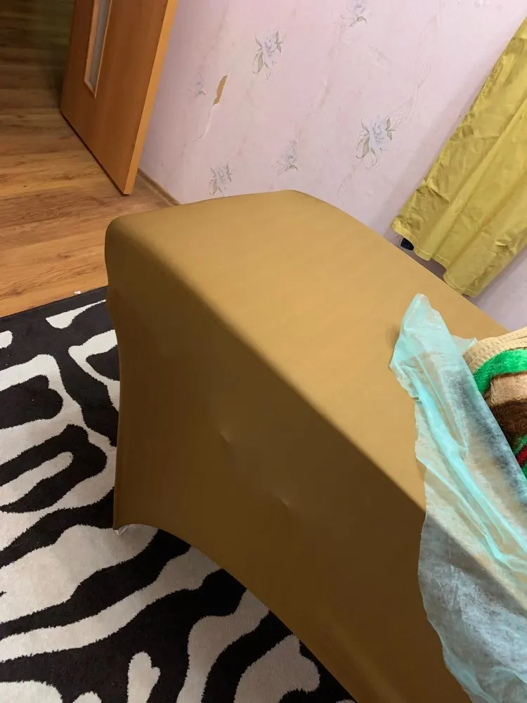 хороший чехол! ткань немного скользкая на ощупь - минус этого что скользит одноразовая простынь, но затотвмякие ворсинки и шерстинки не липнут) еще немного не привычно стало сидеть- из за натянутой ткани на ножки кушетки теперь не пролазят мои ноги под нее... но я приспособилась))