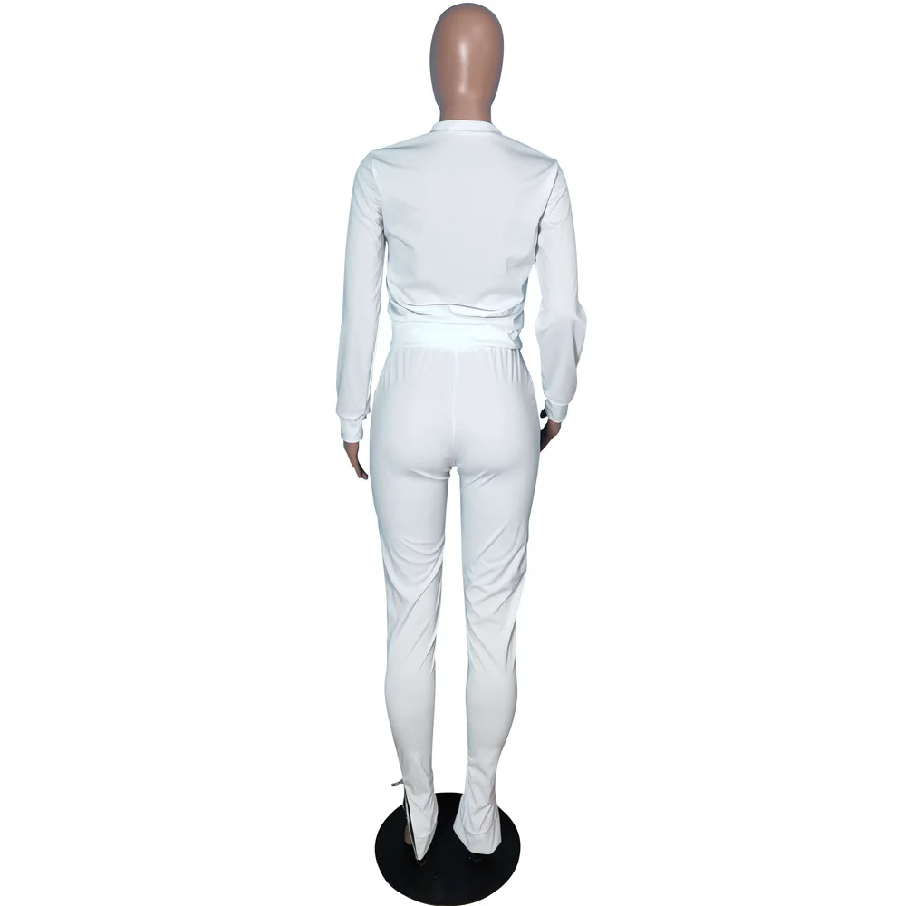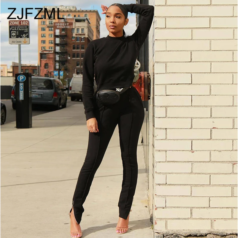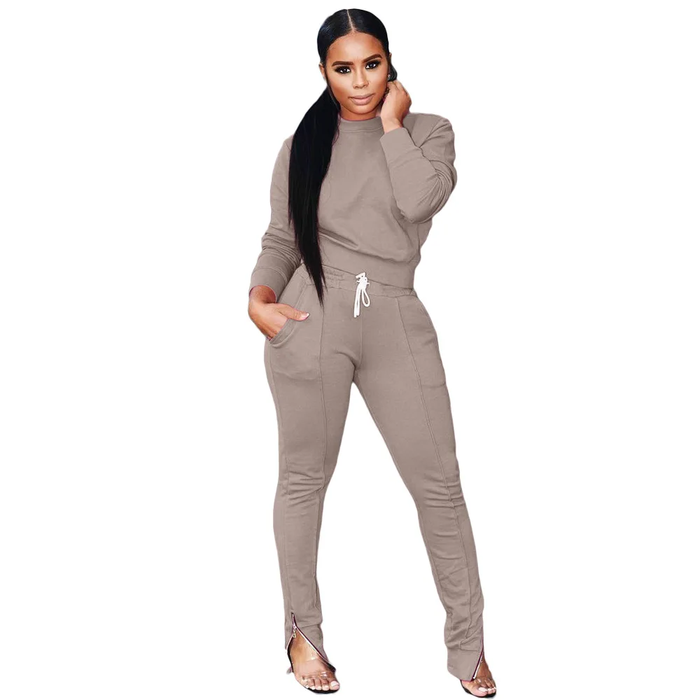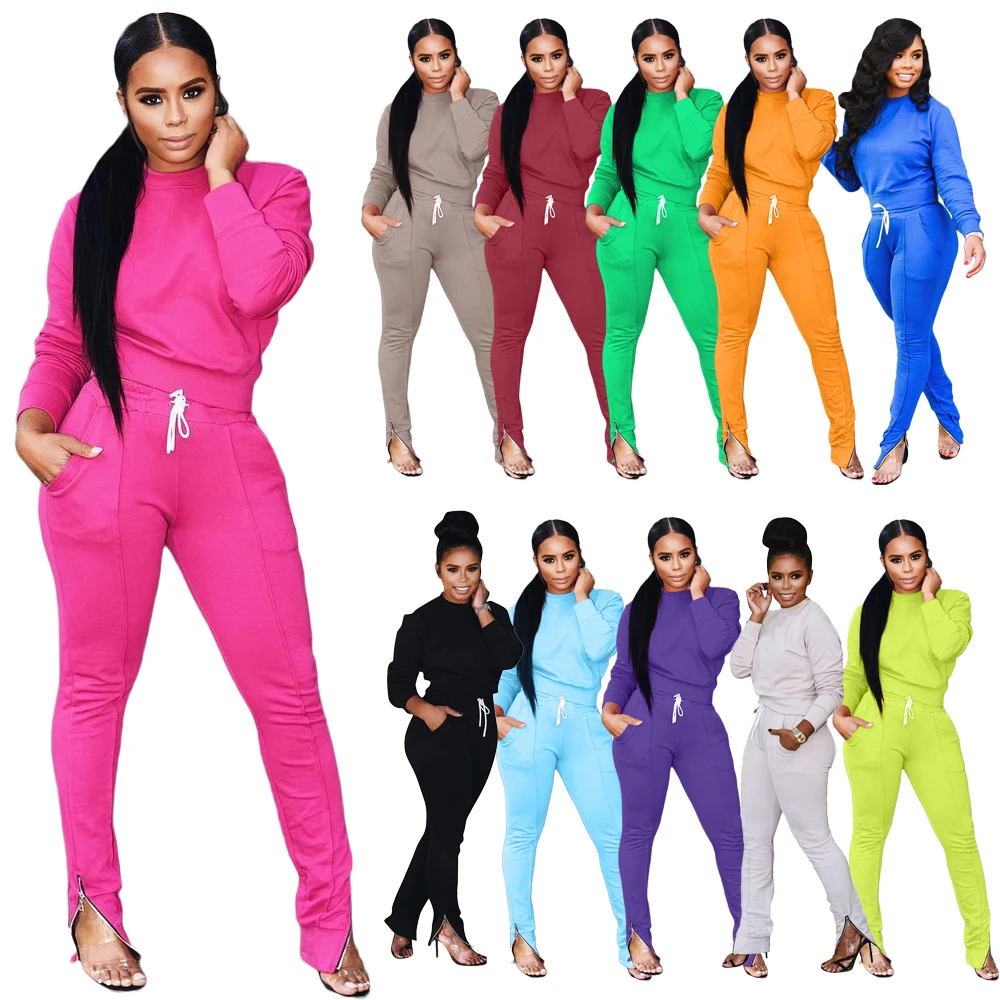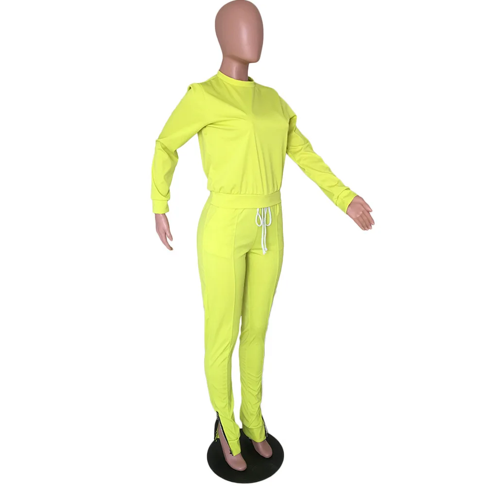 Женский Повседневный комплект из двух предметов, неоновый топ с круглым вырезом и длинным рукавом и брюки-карандаш на молнии с боковыми карманами, одежда для активного отдыха