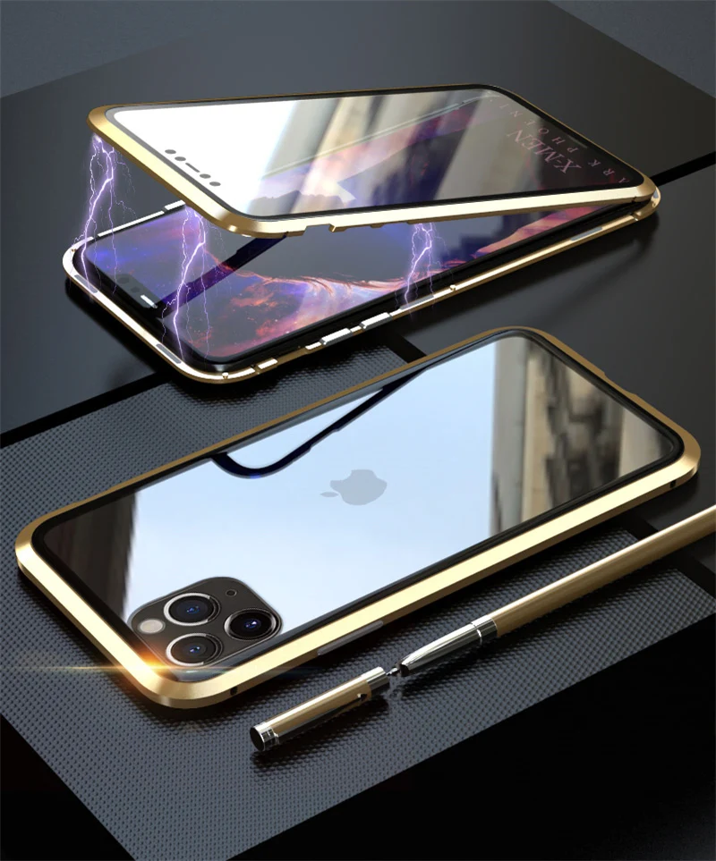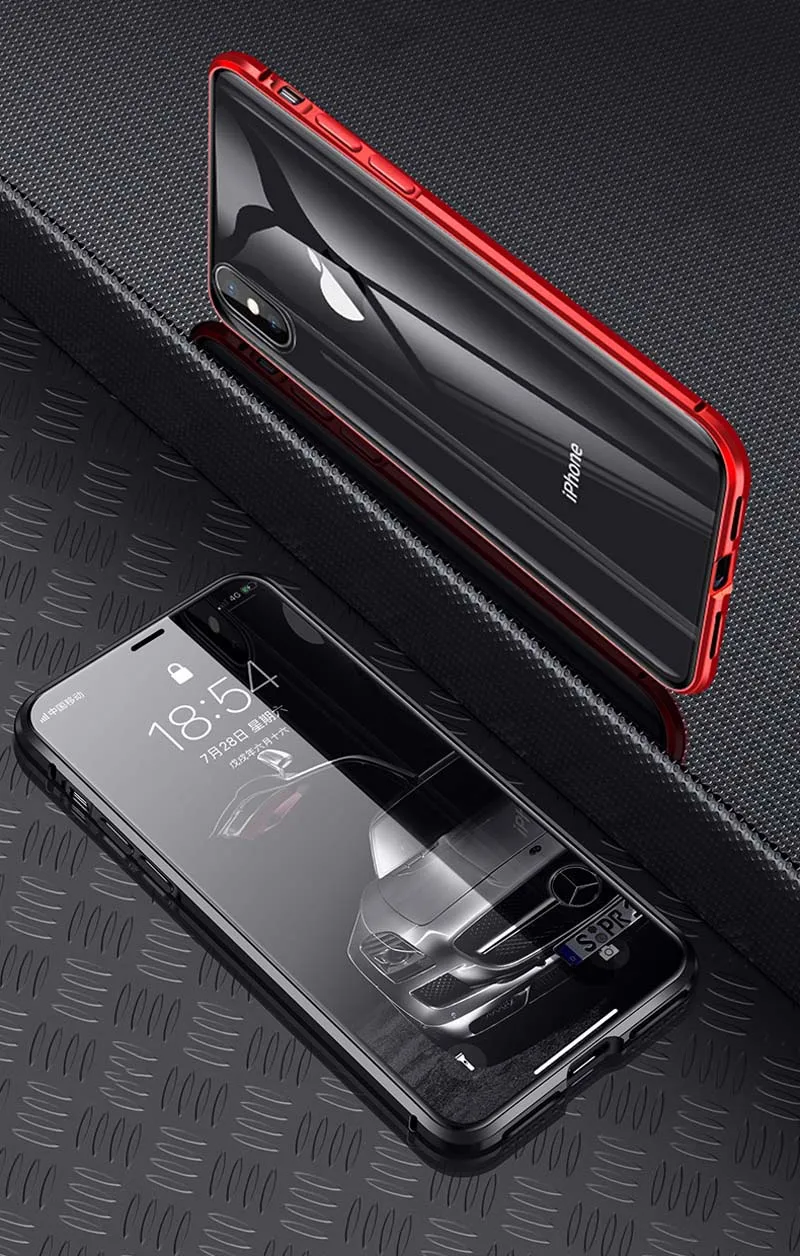 Двусторонний стеклянный металлический магнитный чехол для iPhone XS...